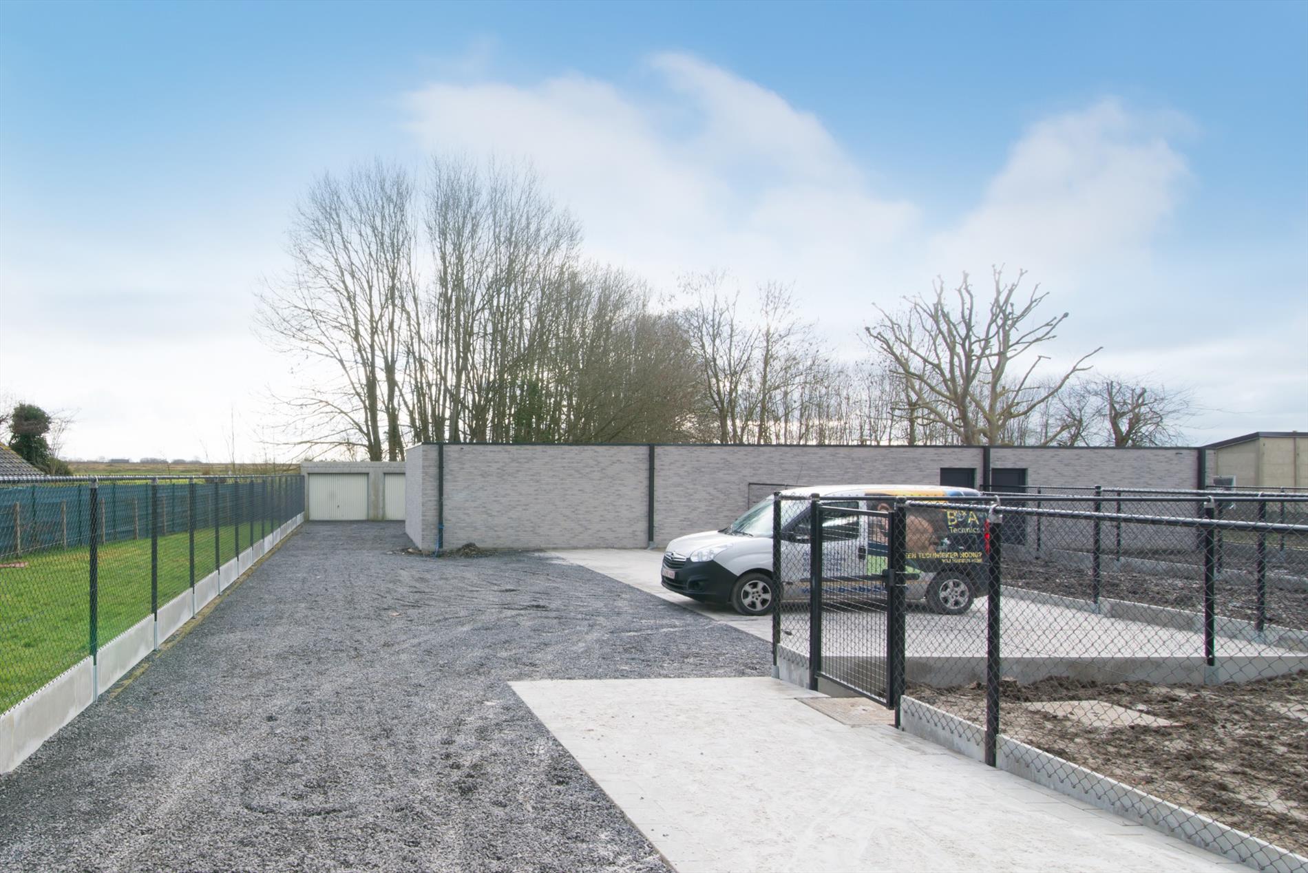 Achteraan het gebouw zijn 7 garages, 6 autostaanplaatsen en een gemeenschappelijke fietsenberging voorzien.