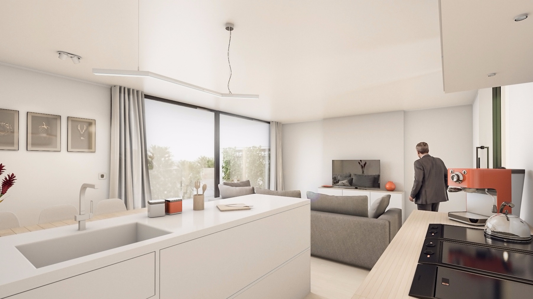 De gelijkvloerse appartementen beschikken over een private tuin van 30 tot 117m², de andere appartement over zongerichte terrassen. De keuken, vloer, deuren en badkamer worden volledig naar eigen smaak ingericht. Hiervoor kan men beroep doen op de toeleveranciers die u graag bijstaan bij het personaliseren van het appartement.
