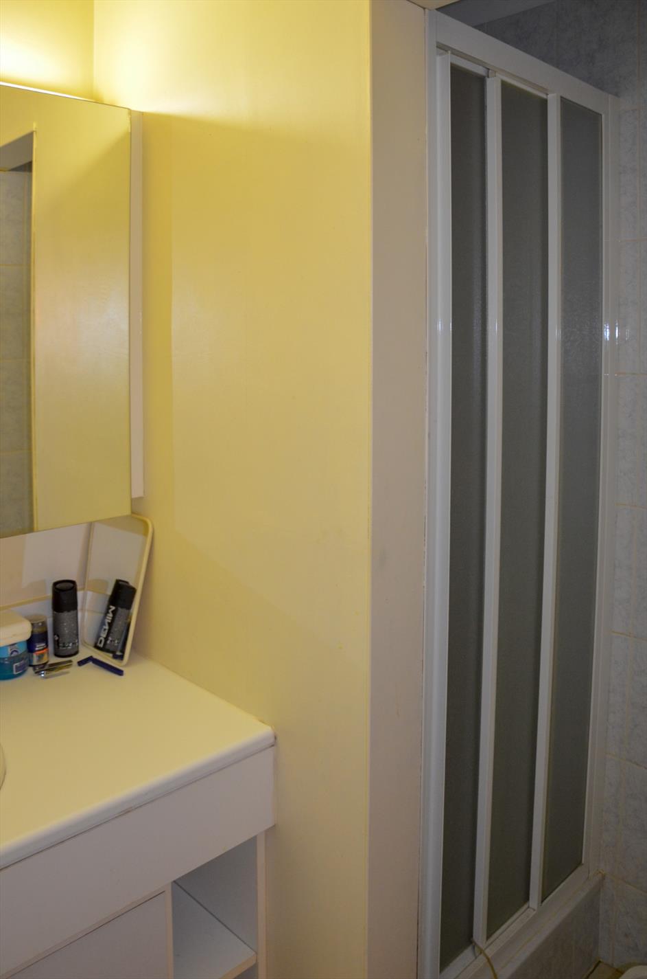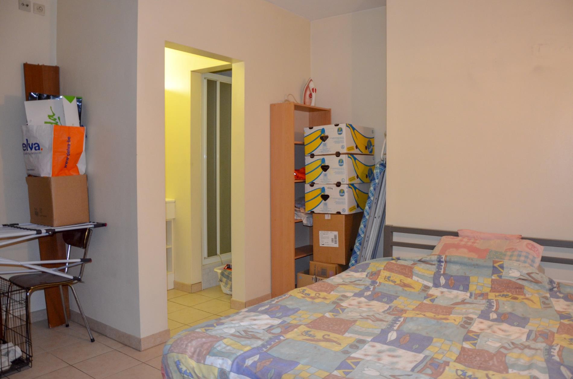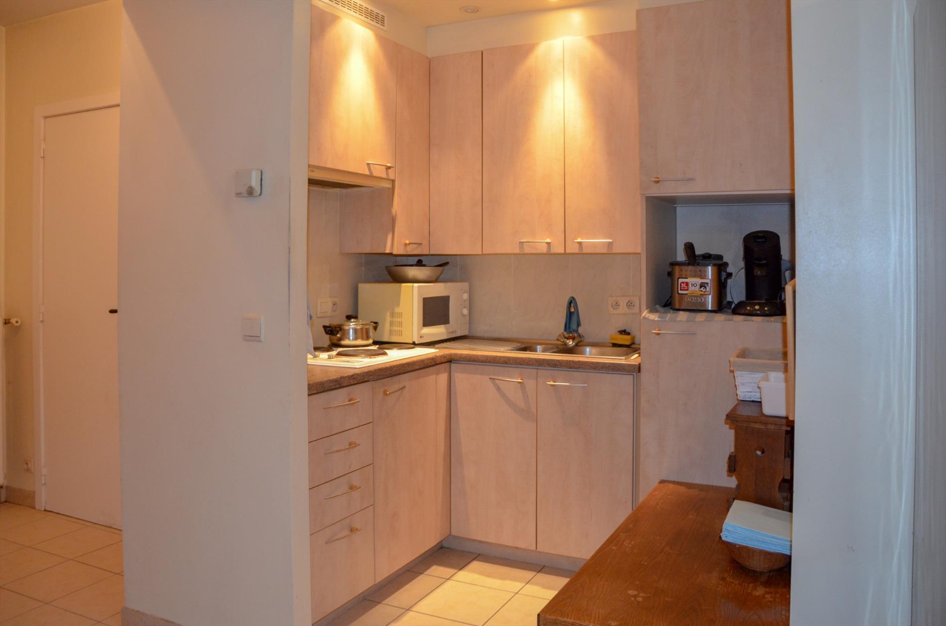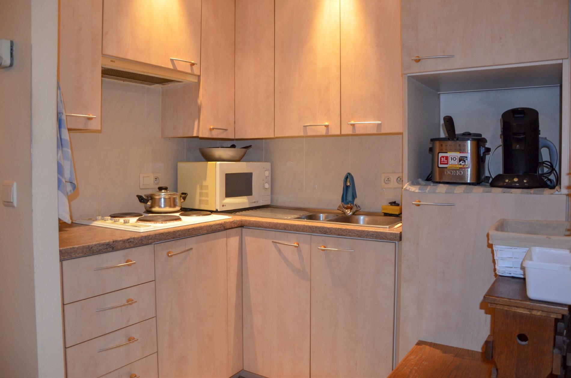 Inkomhal - apart toilet - leefruimte met ingemaakte kasten en met open ingerichte keuken met o.a. een elektrische kooplaat, dampkap, koelkast met diepvriesvak en dubbele spoelbak - slaapkamer 1 met badkamer (bevat o.a. een instapdouche en lavabomeubel)