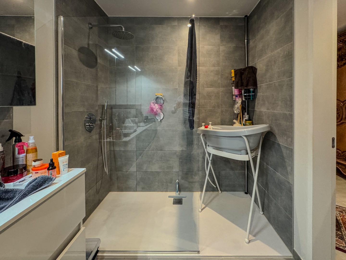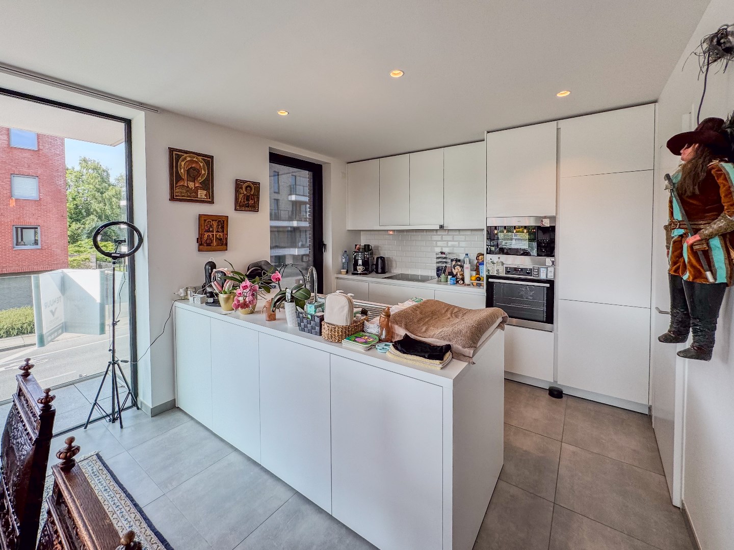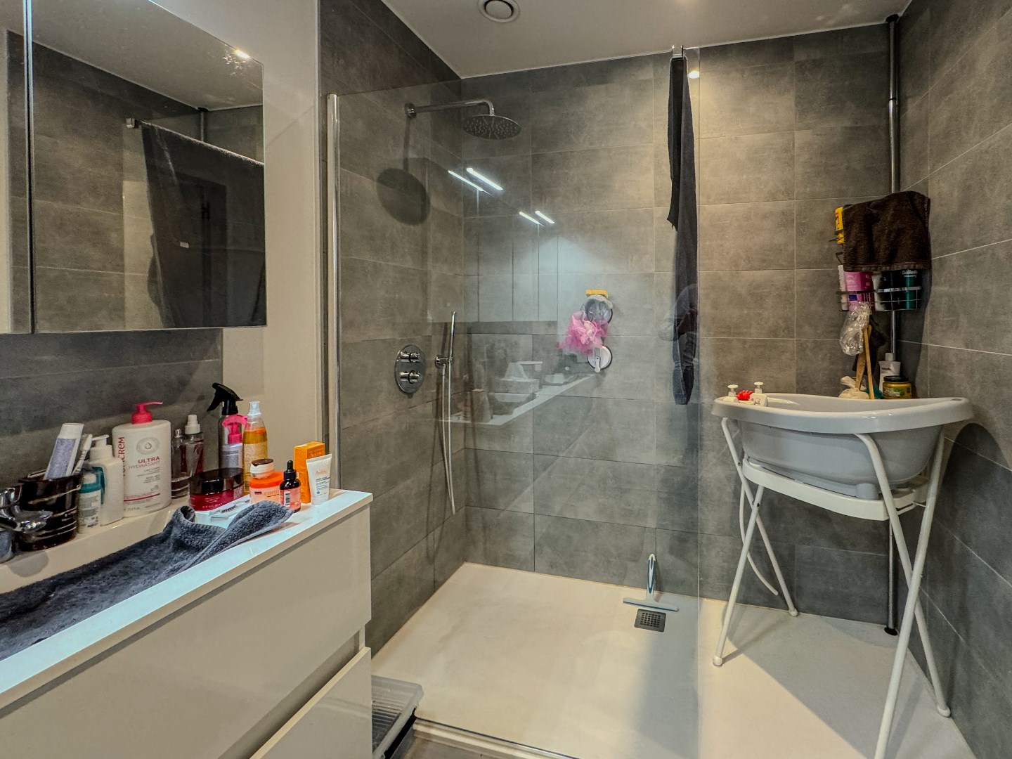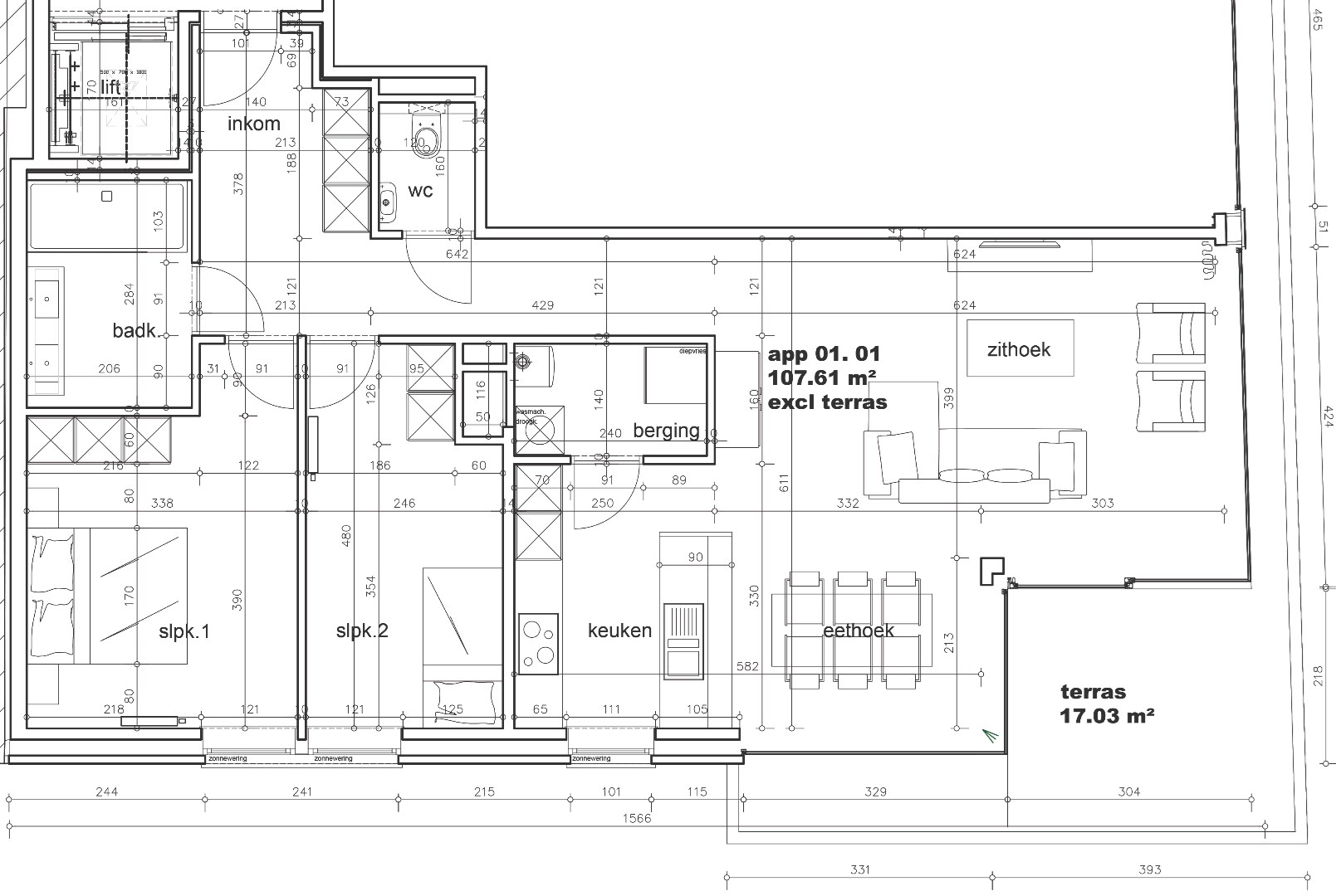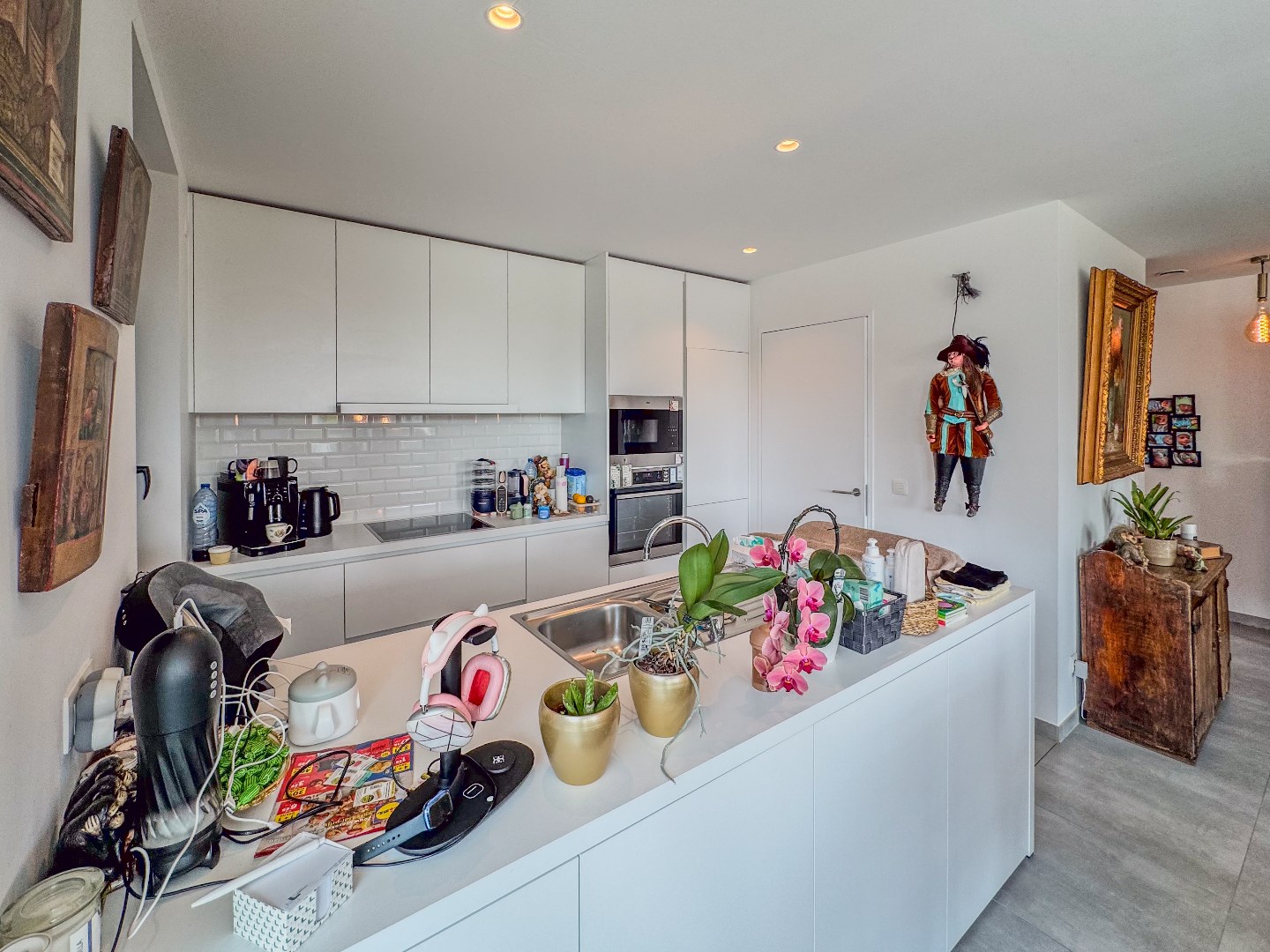 Ruime inkomhal met vestiaireruimte - apart toilet - 2 slaapkamers (14m² en 9m²) - ingerichte badkamer (6m²) met dubbele wastafel en ruime inloopdouche - praktische berging (3,5m²) - lichtrijke leefruimte (43m²) met open ingerichte keuken - ruim hoekterras (17m²) met prachtig uitgestrekt zicht.