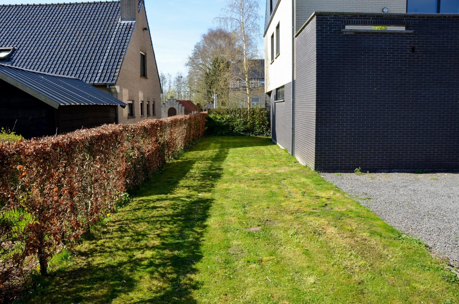 Gemeenschappelijke inkomhal - tuin - garage met kantelpoort.