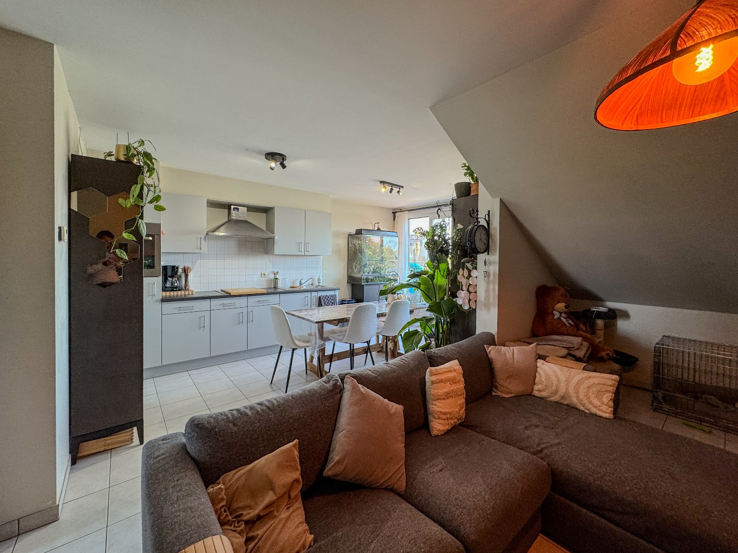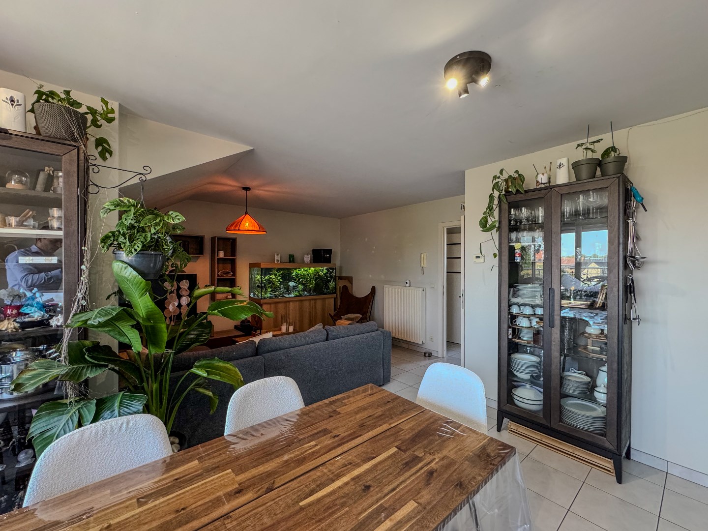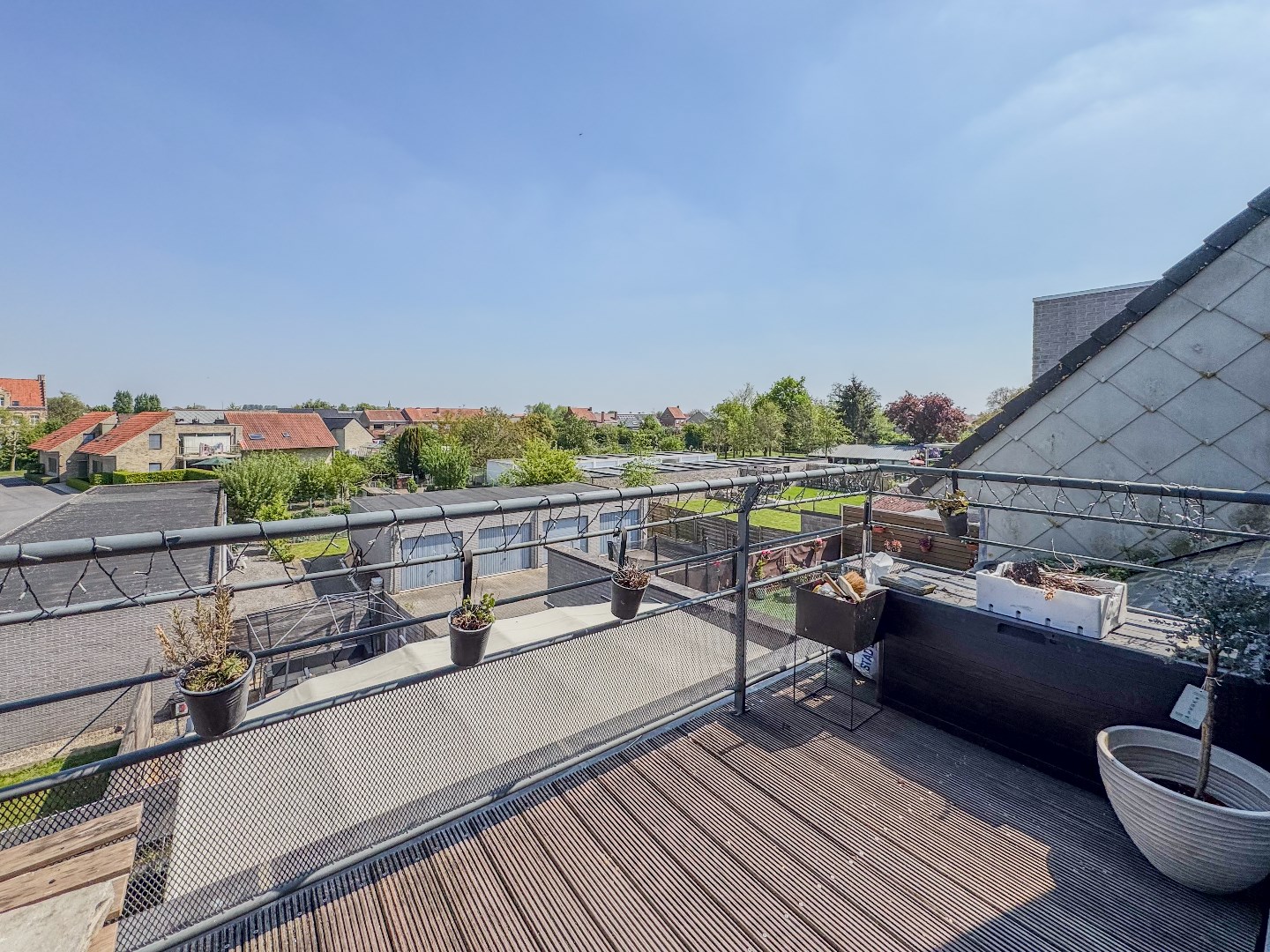 VERDIEP 2: Inkomhal - berging - apart toilet - ruime en lichtrijke woonkamer met open ingerichte keuken met elektrische kookplaat, dampkam, spoelbak, oven en koelkast - aangenaam dakterras - ingerichte badkamer lavabomeubel en instapdouche - slaapkamer - balkon.