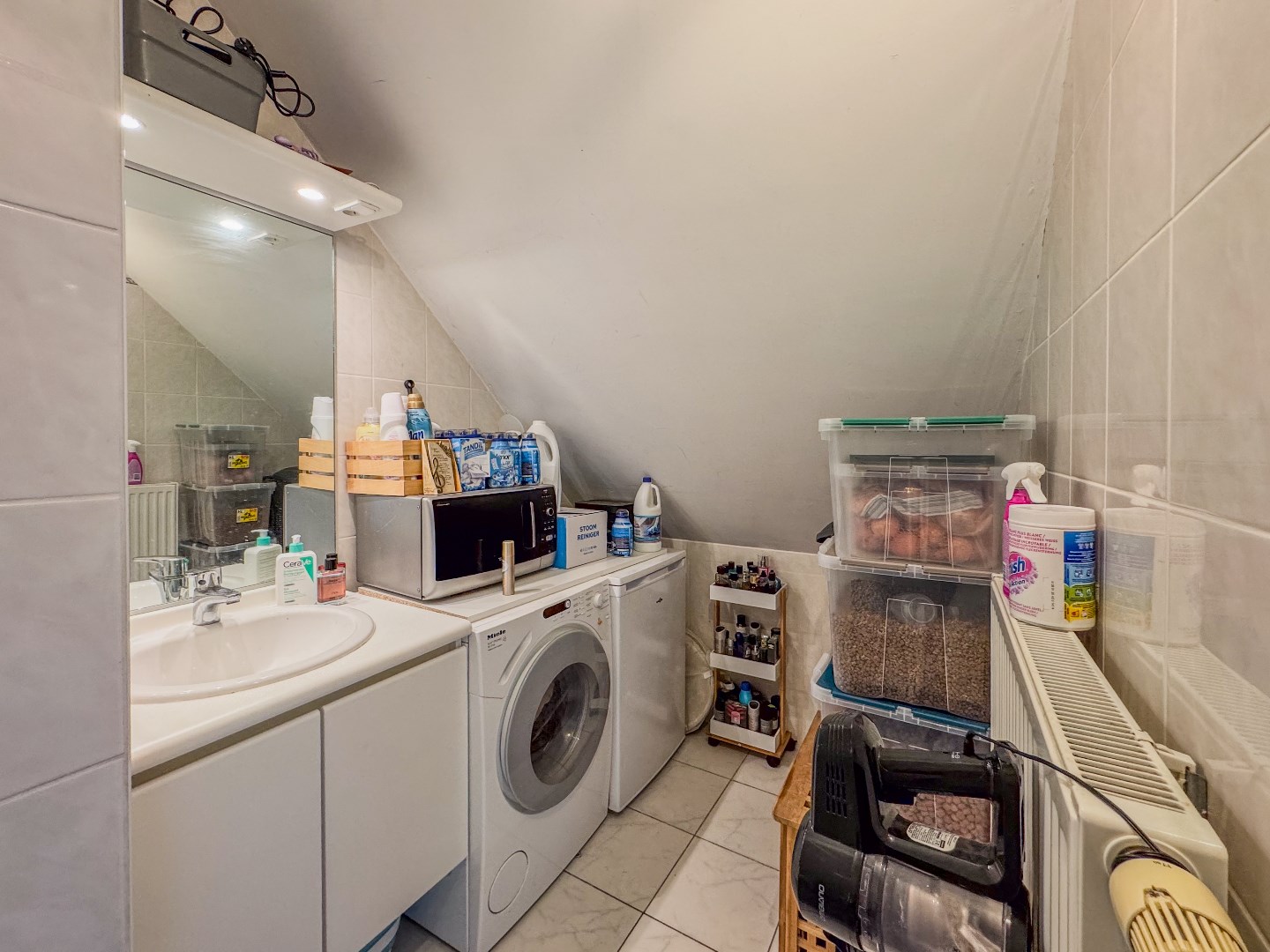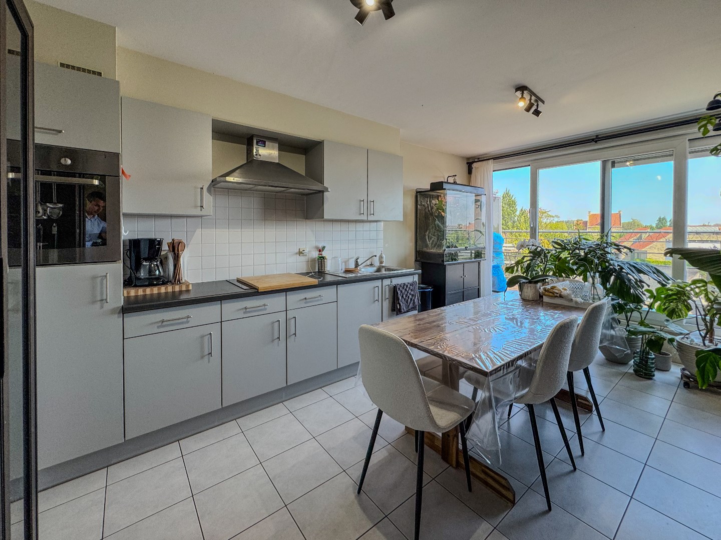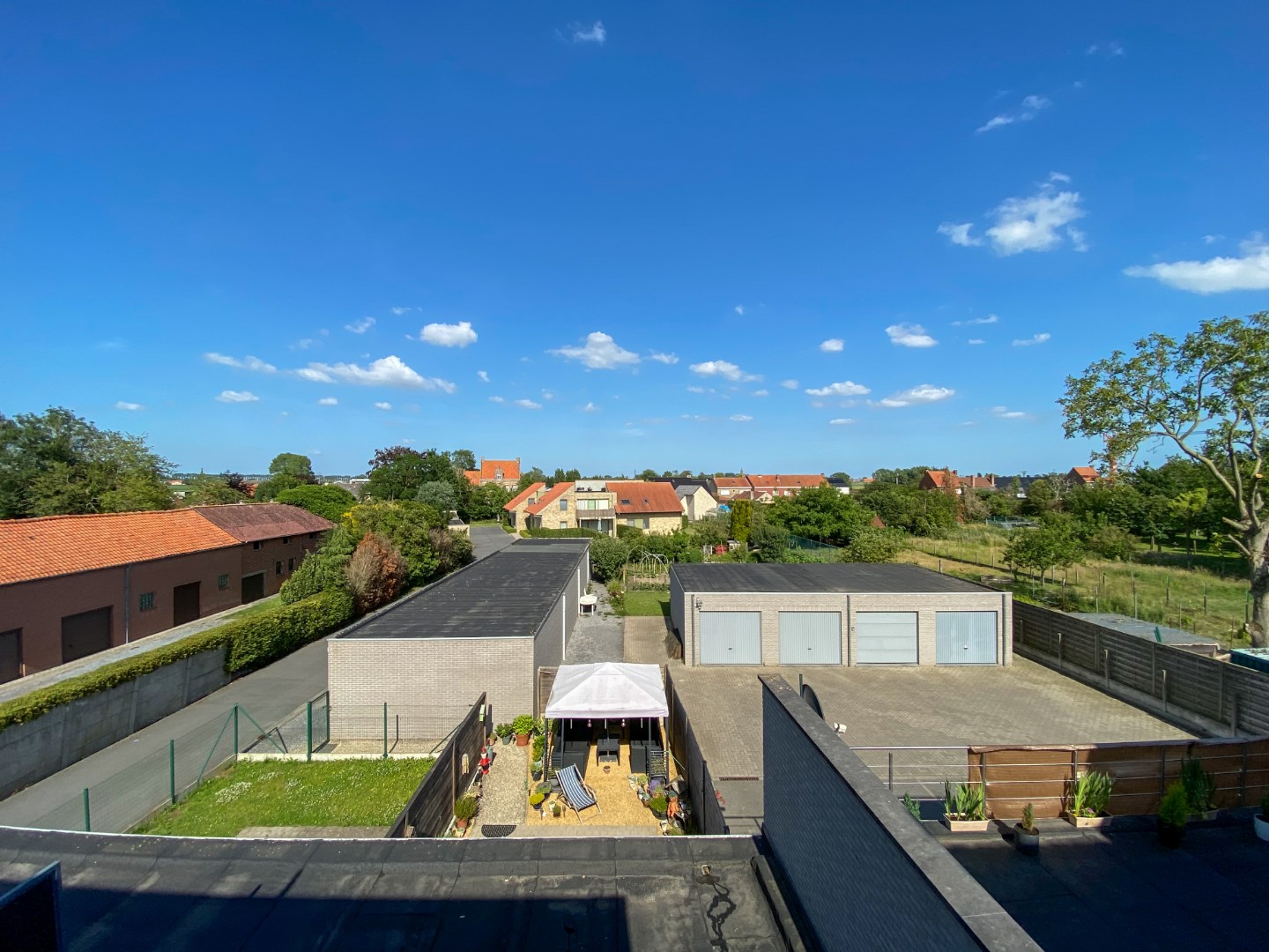 VERDIEP 2: Inkomhal - berging - apart toilet - ruime en lichtrijke woonkamer met open ingerichte keuken met elektrische kookplaat, dampkam, spoelbak, oven en koelkast - aangenaam dakterras - ingerichte badkamer lavabomeubel en instapdouche - slaapkamer - balkon.