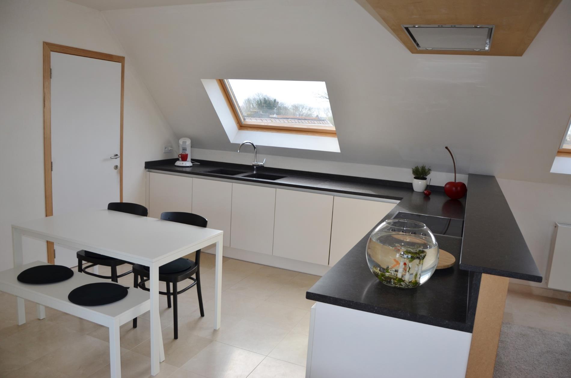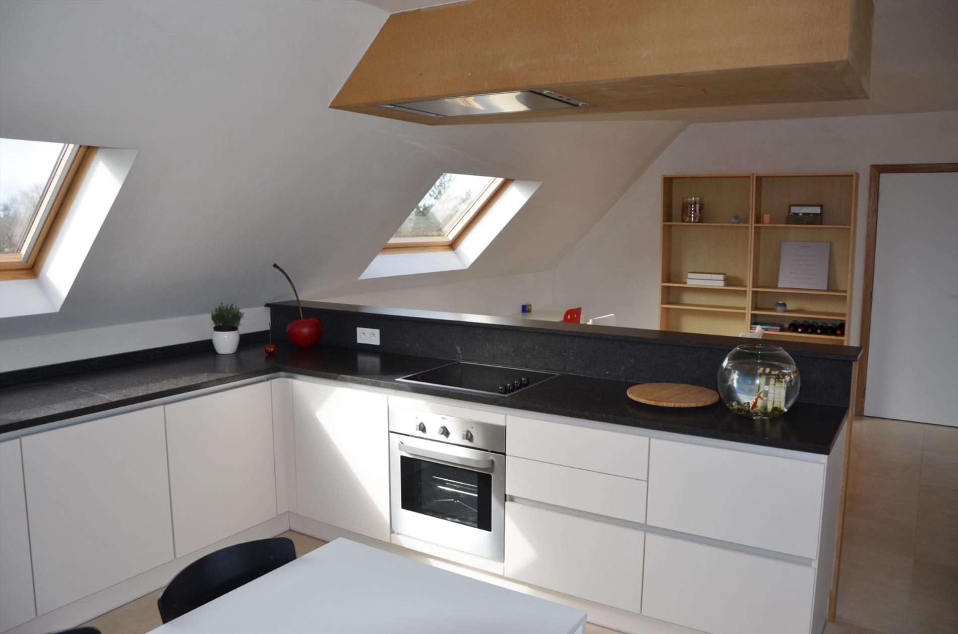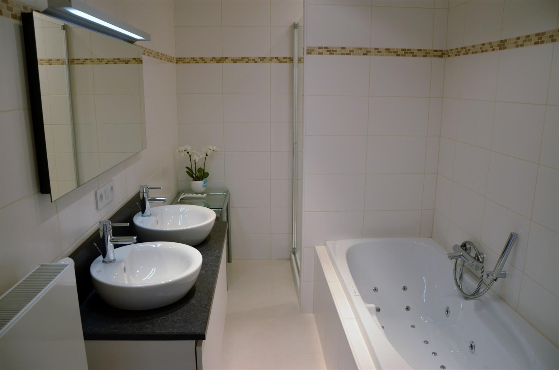 Inkomhal met apart gastentoilet - leefruimte met toegang tot het terras - open ingerichte keuken met marmeren werkblad en bevat o.a. een oven, vitrokeramische kookplaat, dampkap met afstandsbediening, vaatwasmachine, koelkast en ingemaakte kasten - bergruimte met wastafel en wasruimte - slaapkamer 1 - ingerichte badkamer met relaxatiebad, instapdouche en dubbele wastafel - slaapkamer 2 - ruime geïsoleerde zolder.