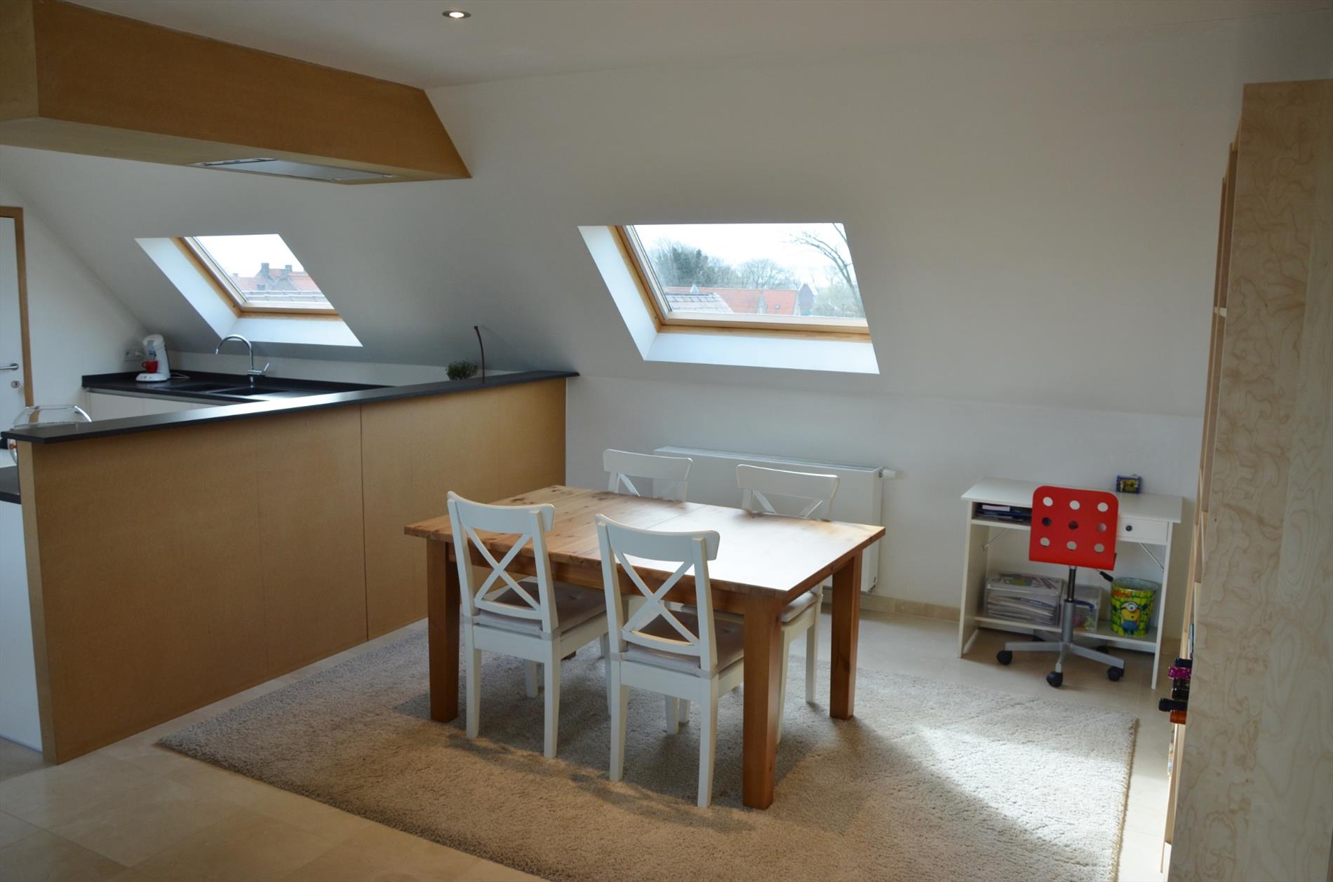 Dit instapklaar dakappartement is centraal gelegen op de verbindingsweg Diksmuide - Lichtervelde en in de directe nabijheid van winkels (zoals proxy Delhaize), school,... Dit appartement heeft volgende indeling: