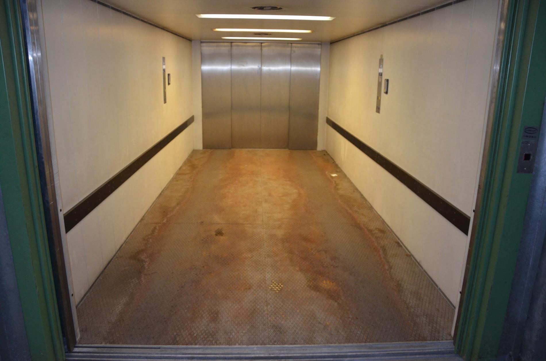 In-en uitrit via autolift aan de stationsstraat. Afmeting: 2,90 op 6,00.