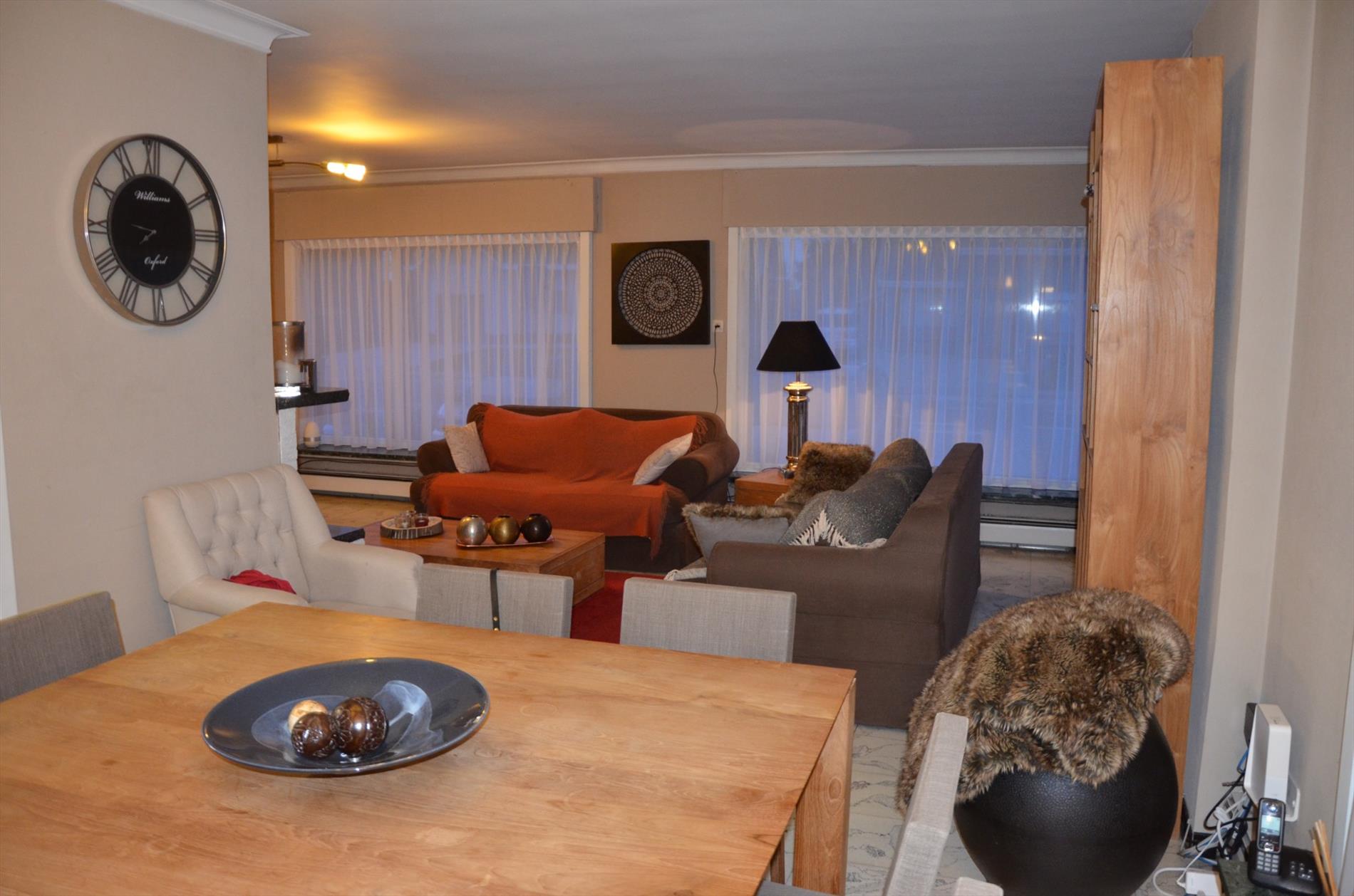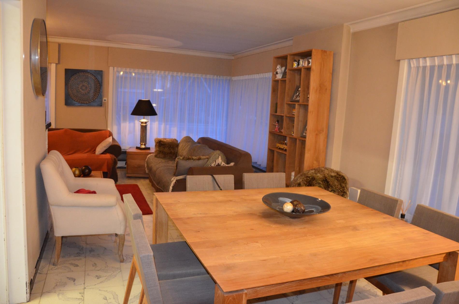Inkomhal - lichtrijke living met houtkachel - gerenoveerde keuken met vaatwas, spoelbak, elektrische kookplaat, dampkap, koelkast en ingemaakte kasten - bergruimte/bureau - apart toilet - technische- en wasruimte - tuin met aangenaam zonneterras in gepolierde beton, gazon en tuinberging, oprit in gepolierde beton - dubbele garage.