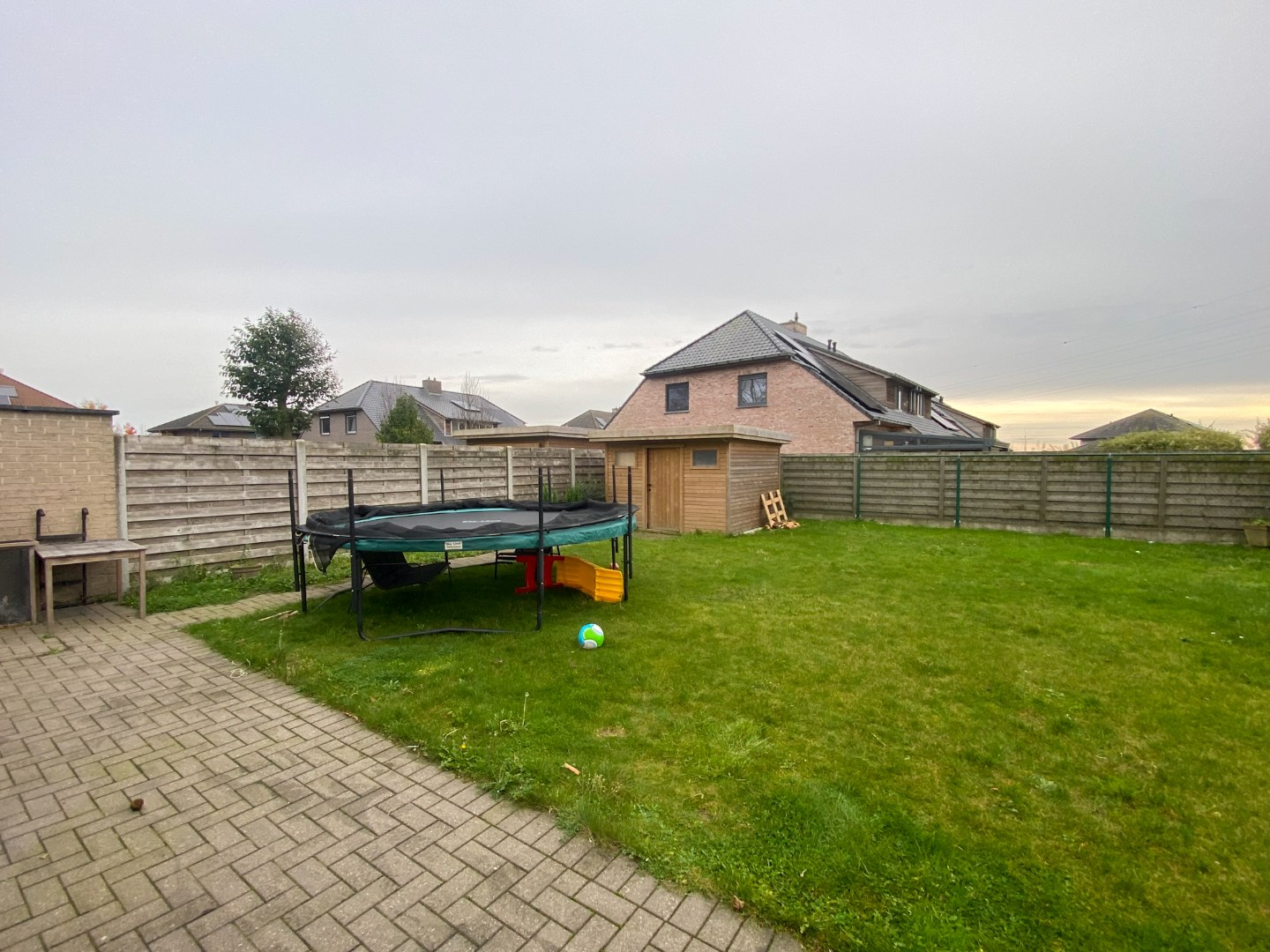 Ruime oprit - zonneterras - tuinberging - gazon.