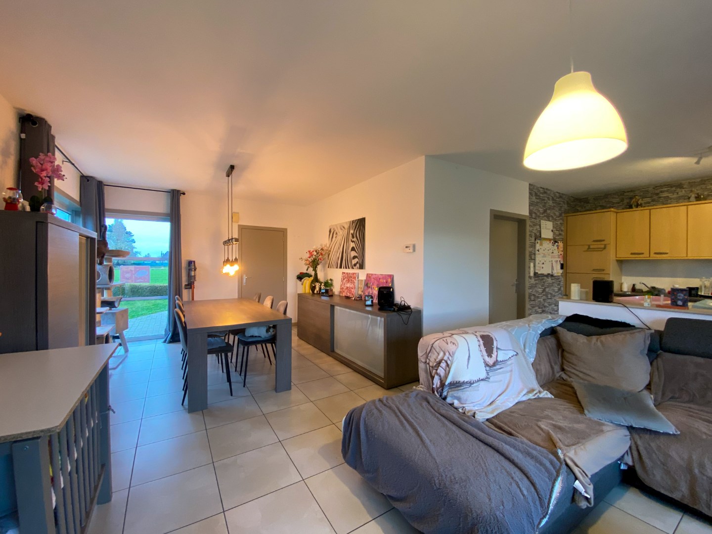 inkom - apart gastentoilet - ruime en lichtrijke living e open ingerichte keuken voorzien van elektrische kookplaat, dampkap, koelkast, vaatwas, oven en spoelbak - garage met sectionaalpoort en wasruimte.