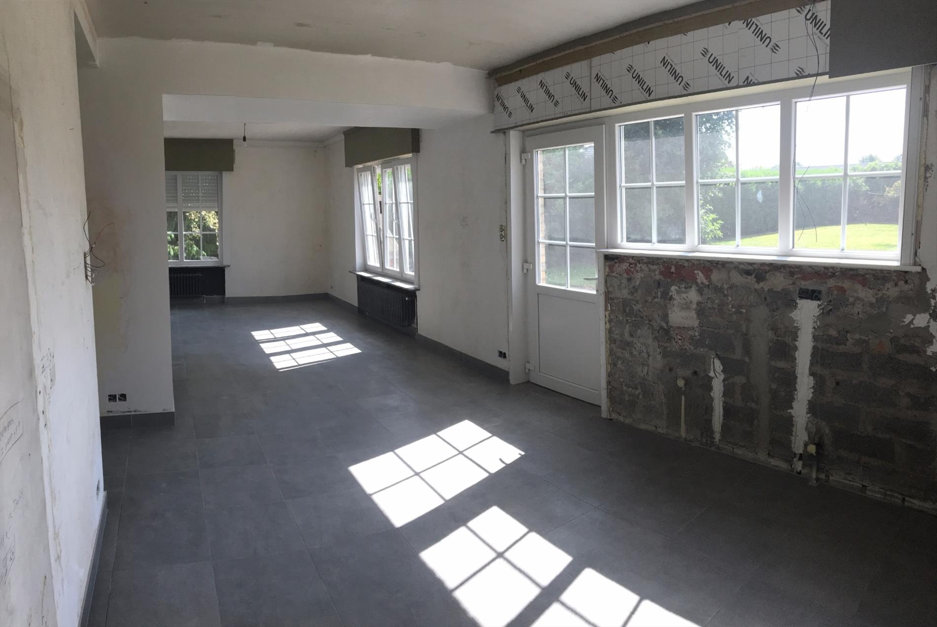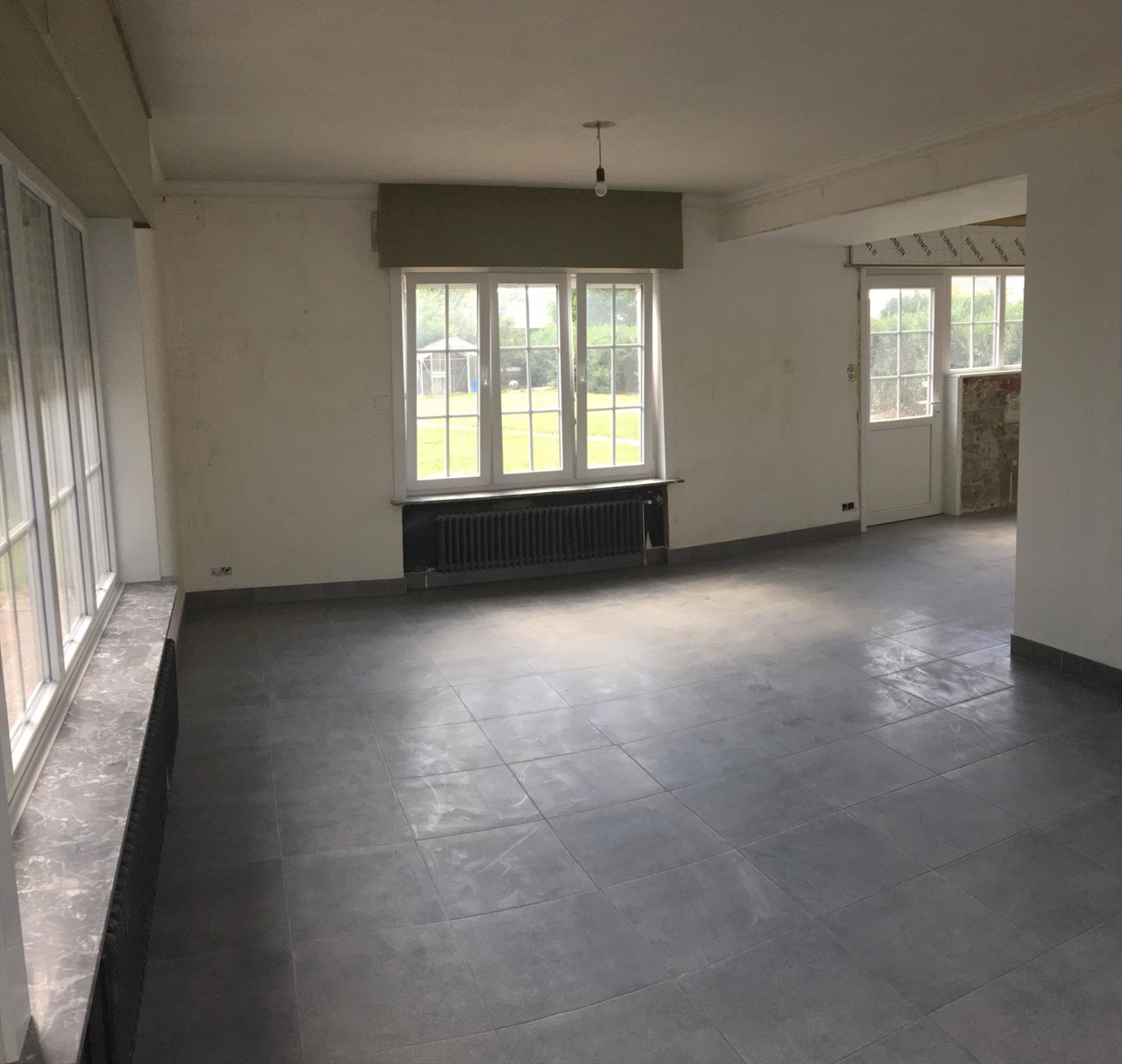Inkomhal - apart toilet - woonkamer - keuken (wordt vernieuwd) - kelder - garage met automatische sectionaalpoort.