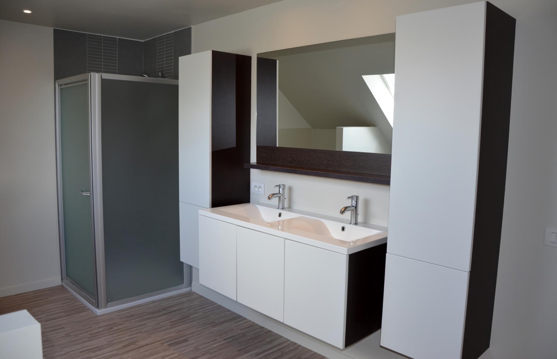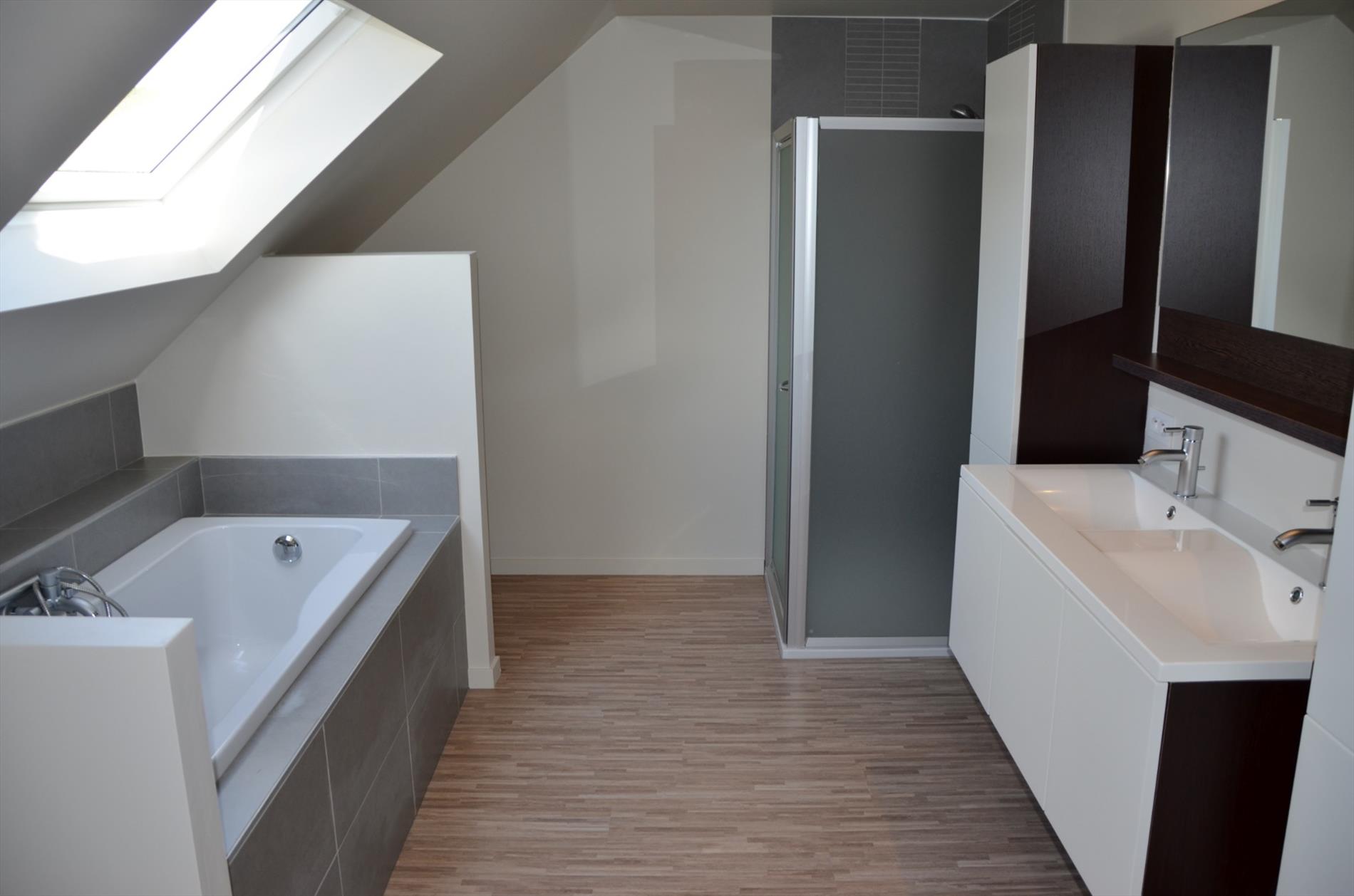 Nachthal - slaapkamer 3 (26m²) - ingerichte badkamer (9m²) met instapdouche, dubbele lavabomeubel, toilet.