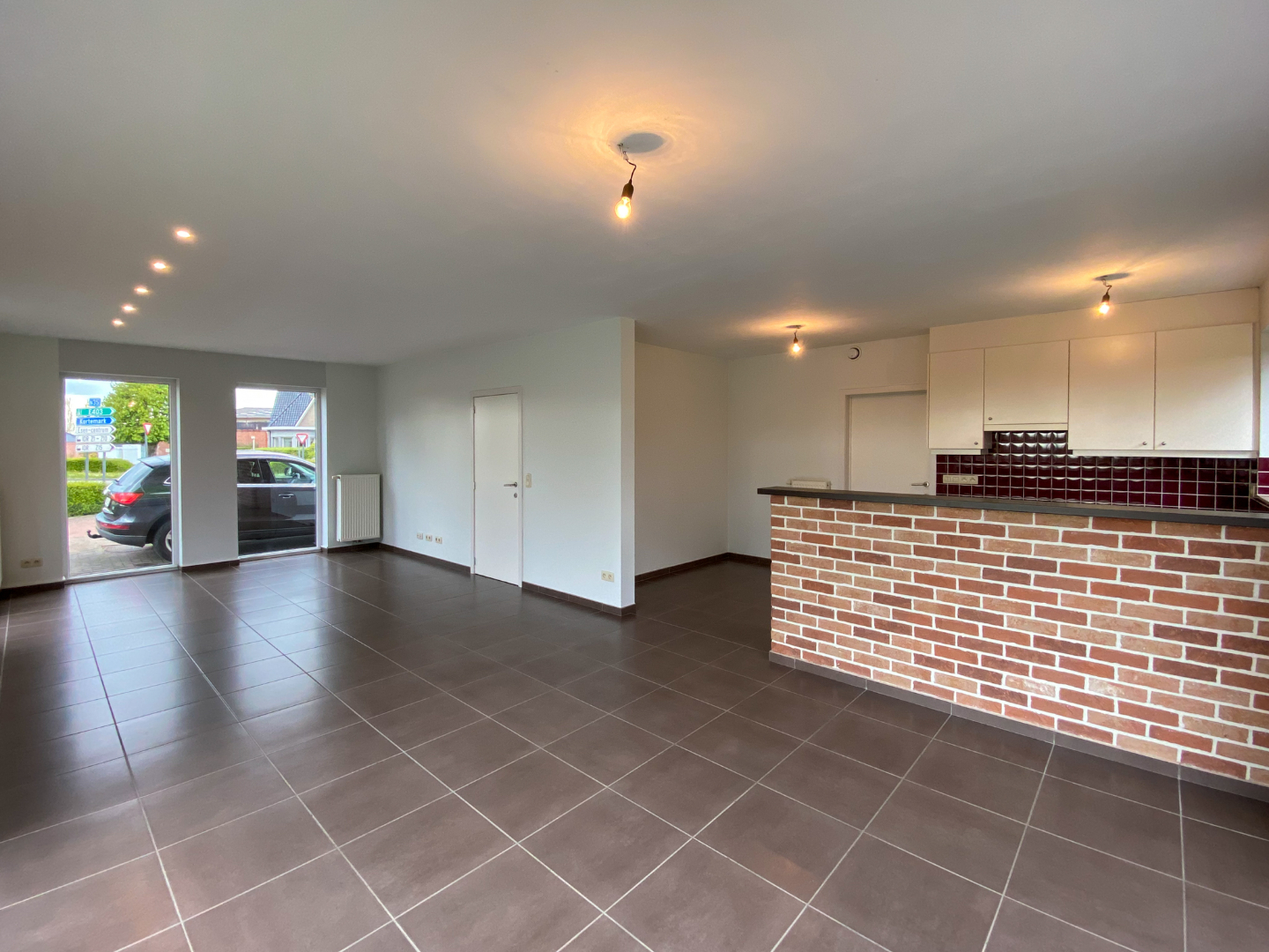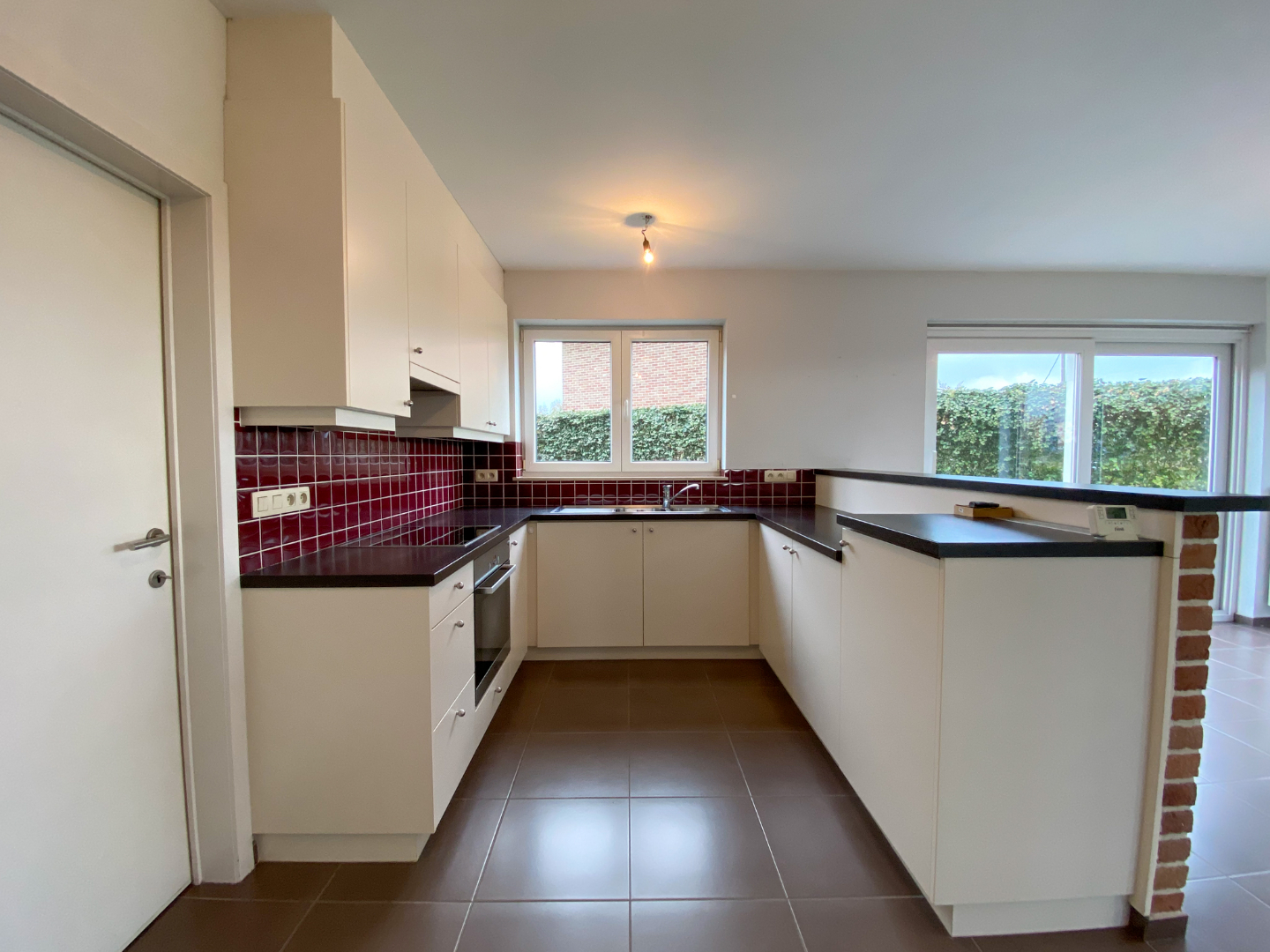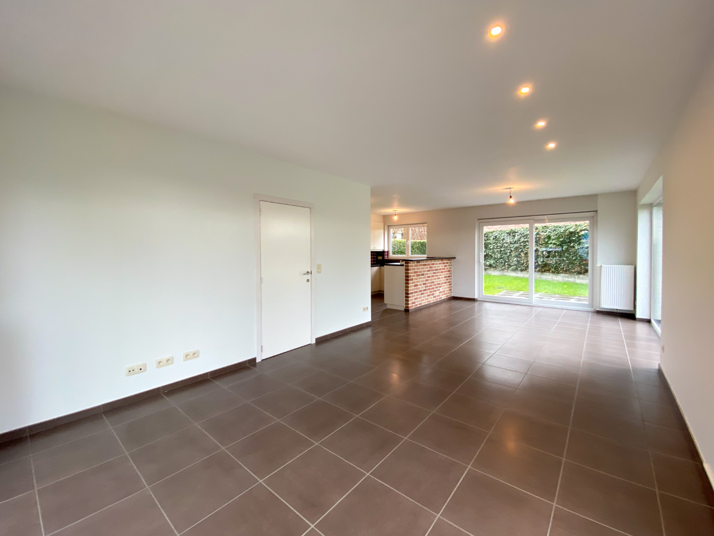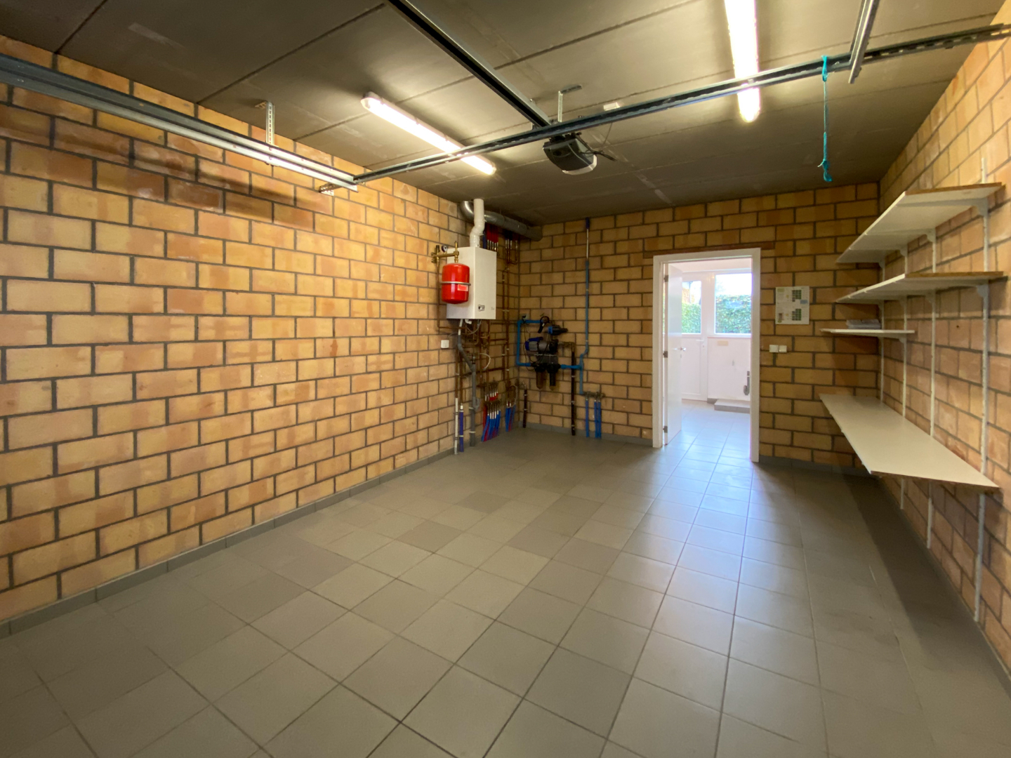 Ruime inkomhal - apart gastentoilet - lichtrijke leefruimte - open ingerichte keuken voorzien van elektrische kookplaat, dampkap, koelkast, en spoelbak - wasruimte en berging - garage.