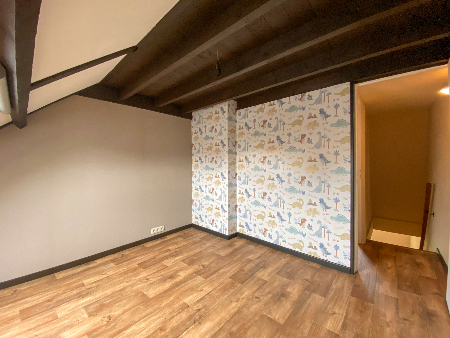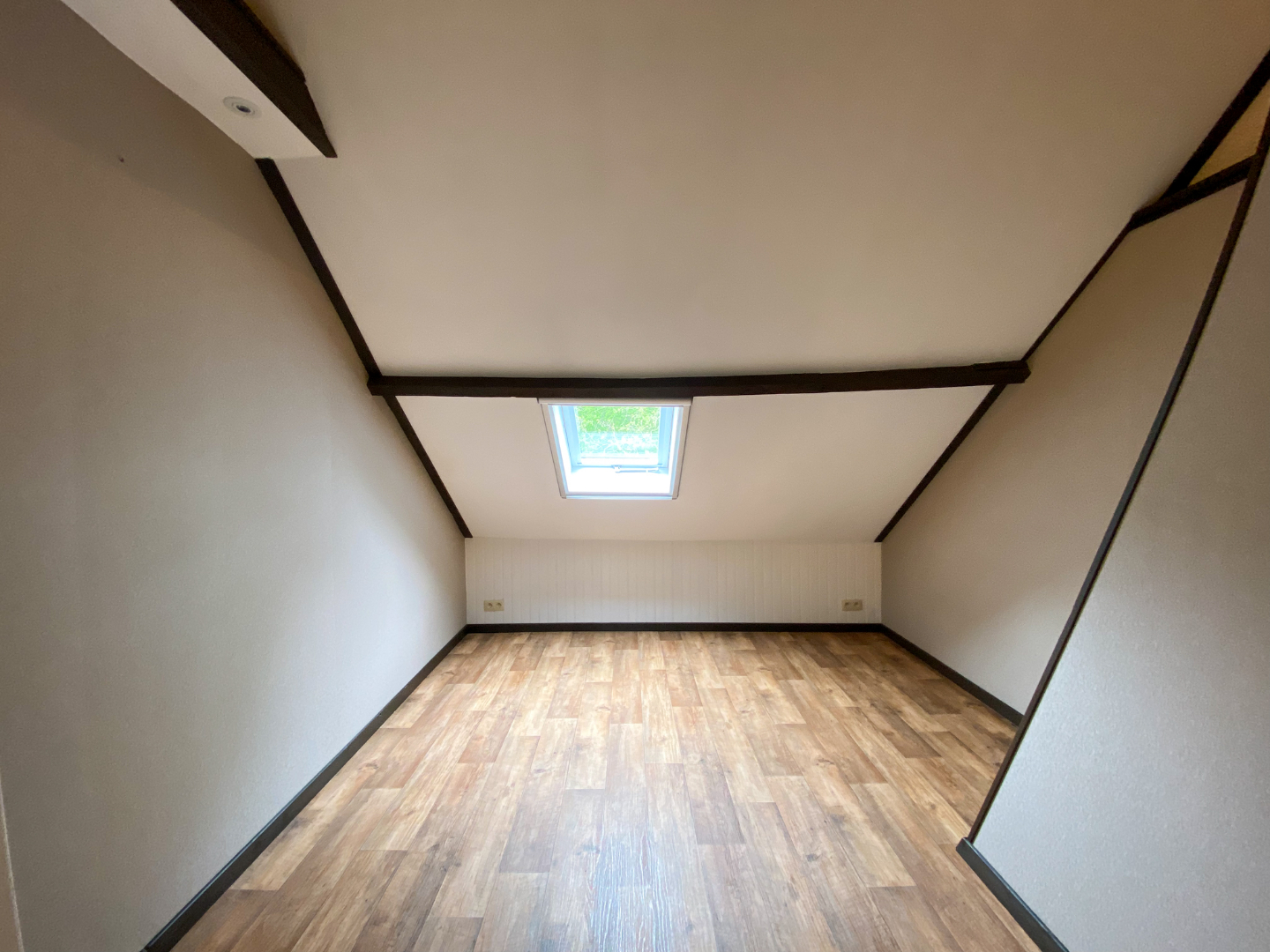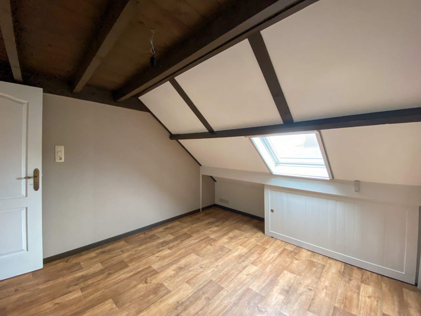 - Schrijnwerk: hout, dubbele beglazing, elektrisch rolluik vooraan en elektrisch rolluik op veluxraam.