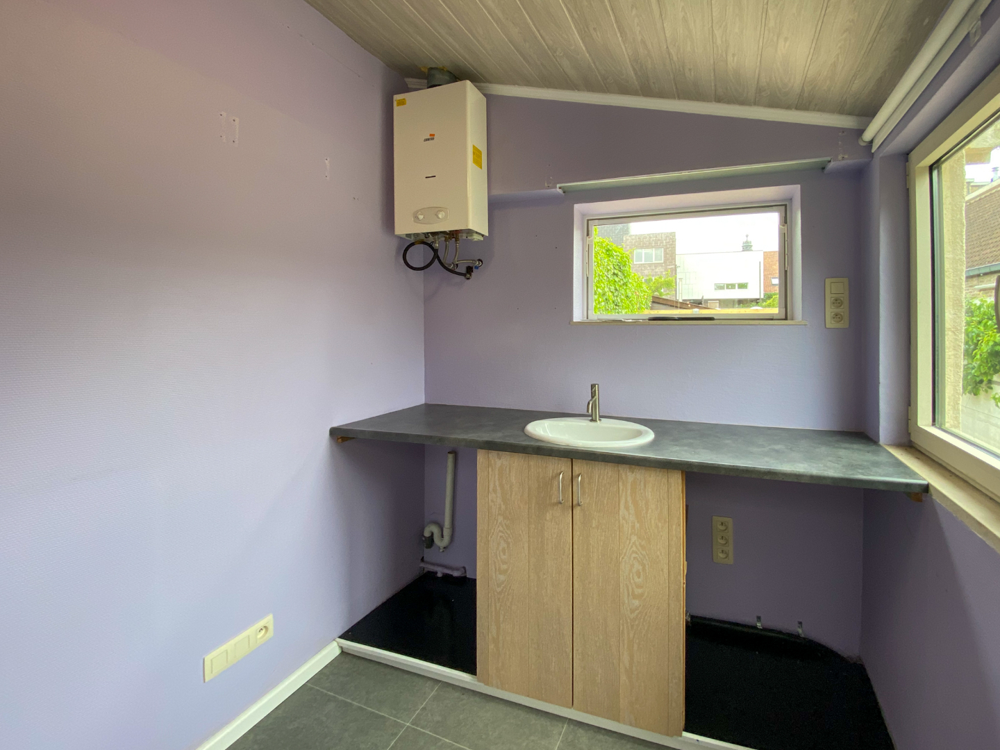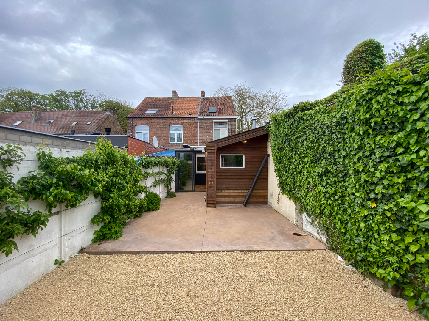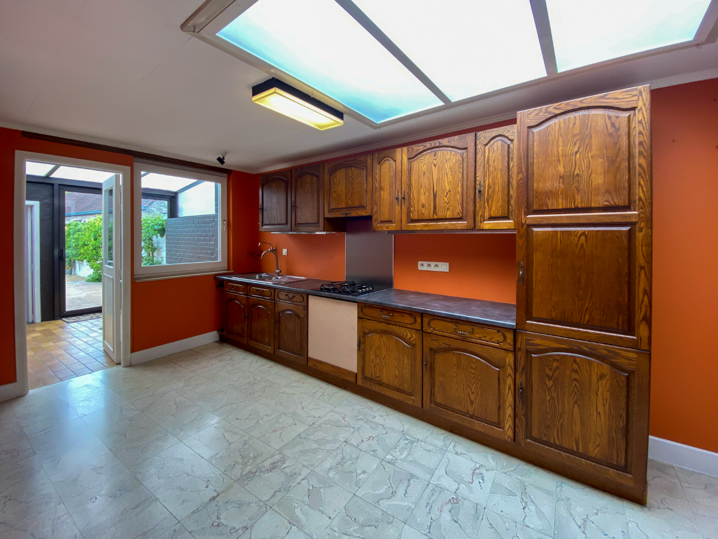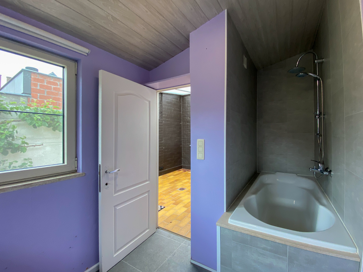 - Schrijnwerk: hout, dubbele beglazing, elektrisch rolluik vooraan en elektrisch rolluik op veluxraam.