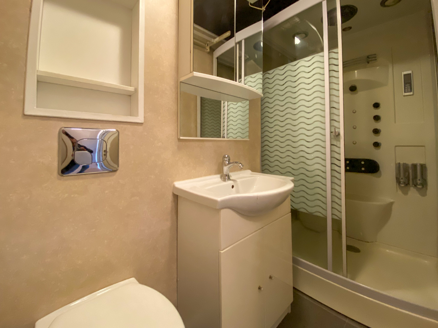 Nachthal - slaapkamer 1- slaapkamer 2/bureau - ingerichte badkamer met toilet, lavabo en douche.