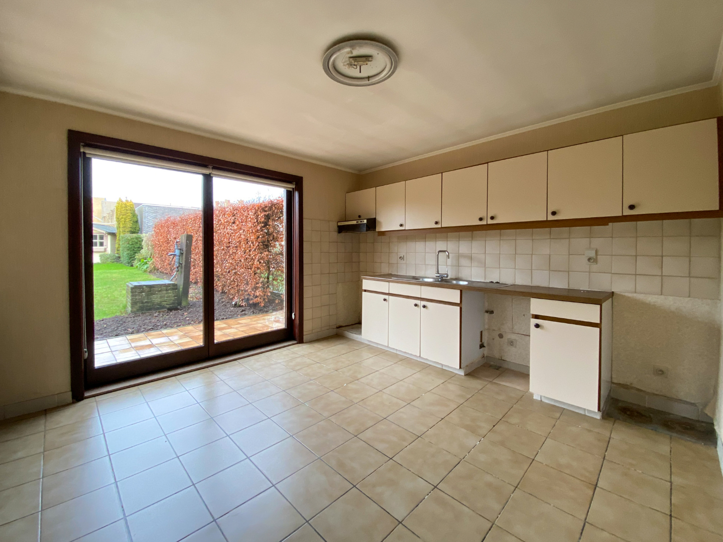 Inkomhal - apart toilet - leefruimte - keuken - garage met kantelpoort en berging.