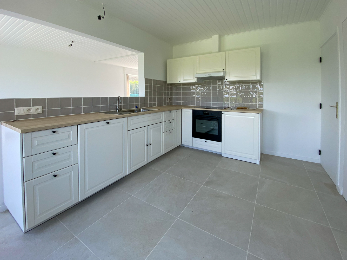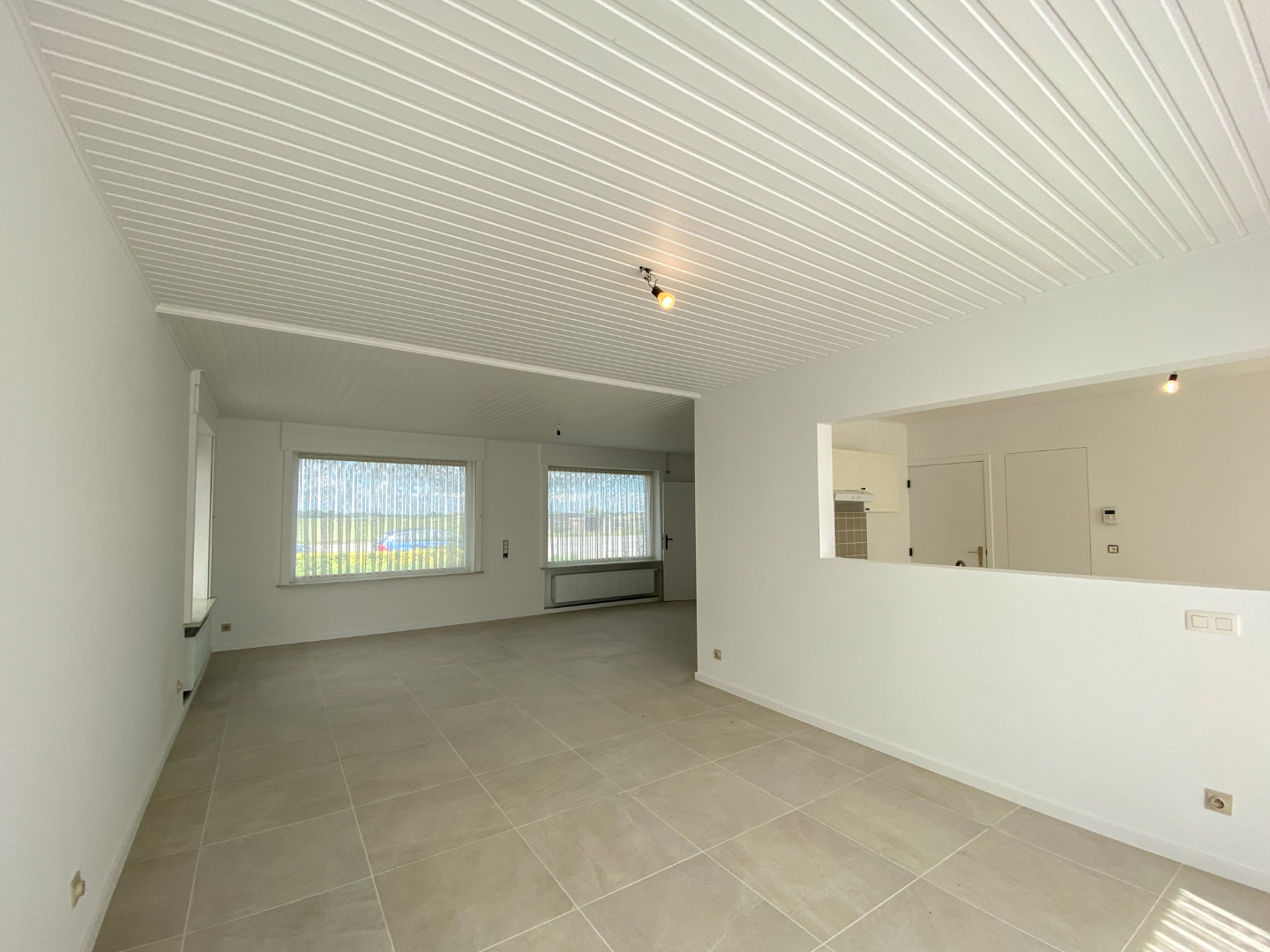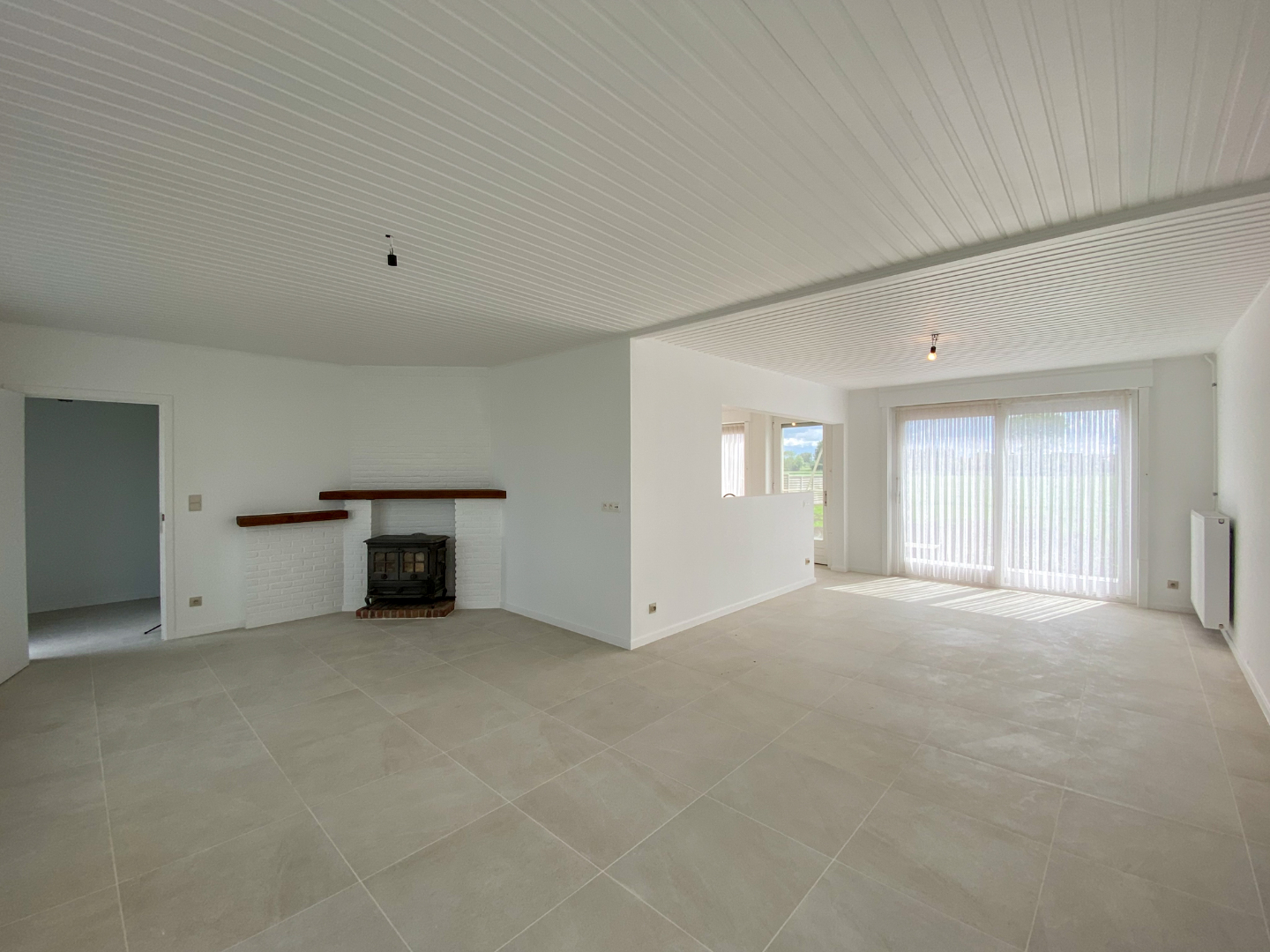 Inkomhal - toilet - ruime lichtrijke living met houtkachel - volledig ingerichte open keuken - bering - ruime garage met automatische sectionaalpoort - ingerichte badkamer met inloopdouche en lavabomeubel - bureau/kinderkamer - slaapkamer.