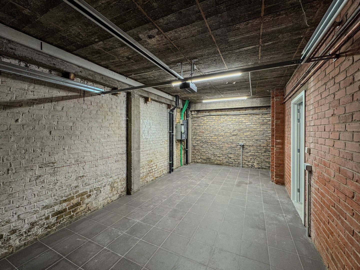 GELIJKVLOERS: Ruime inkomhal met vestiaire - ruime garage met automatische sectionaalpoort en technische ruimte.