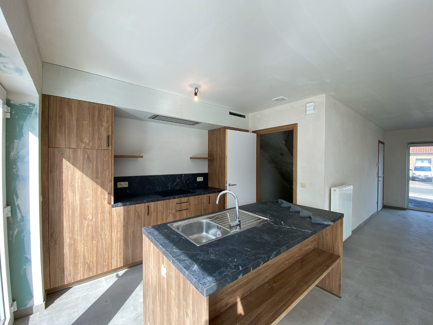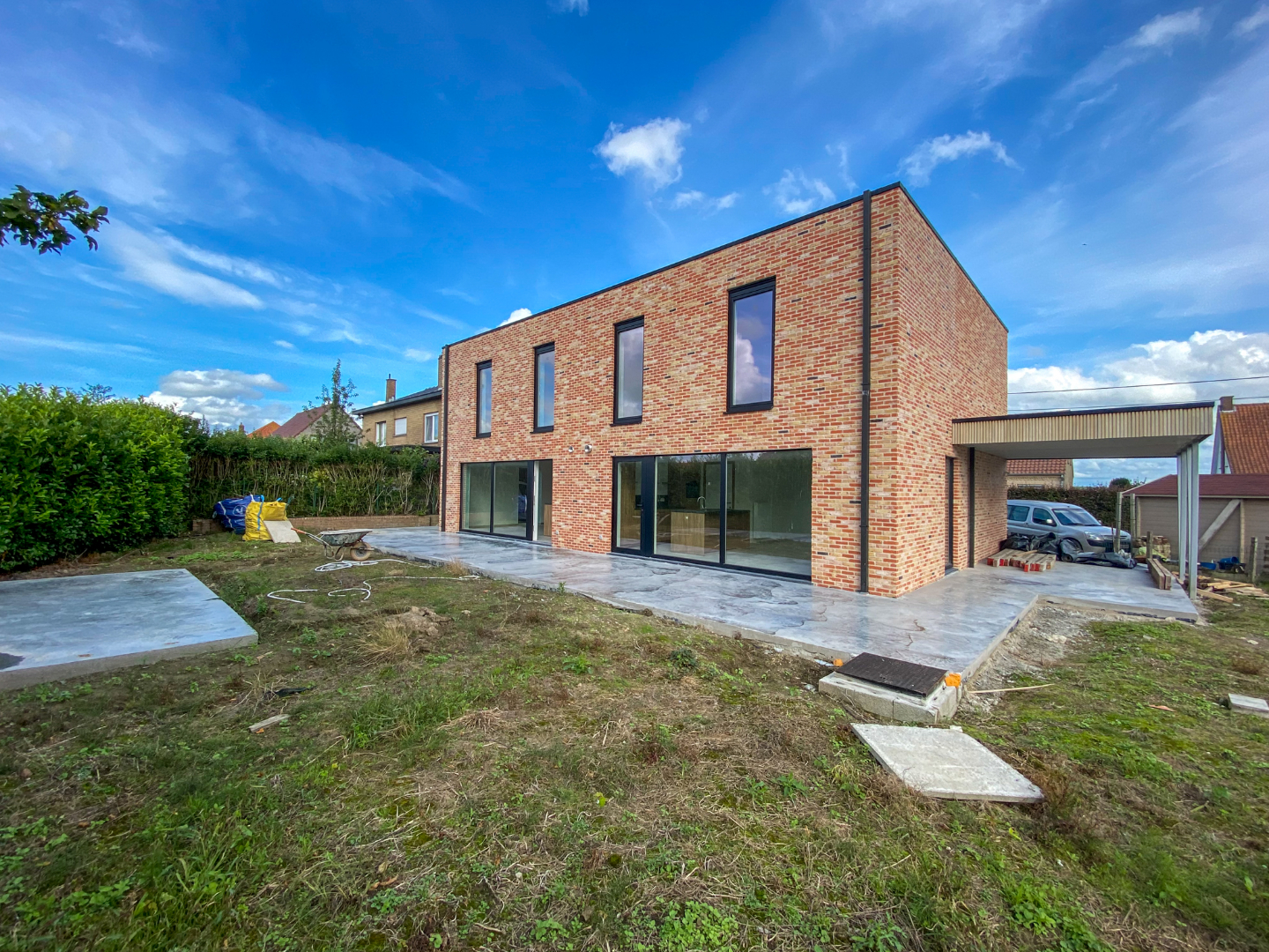 Oprit - carport - terras in polierbeton.