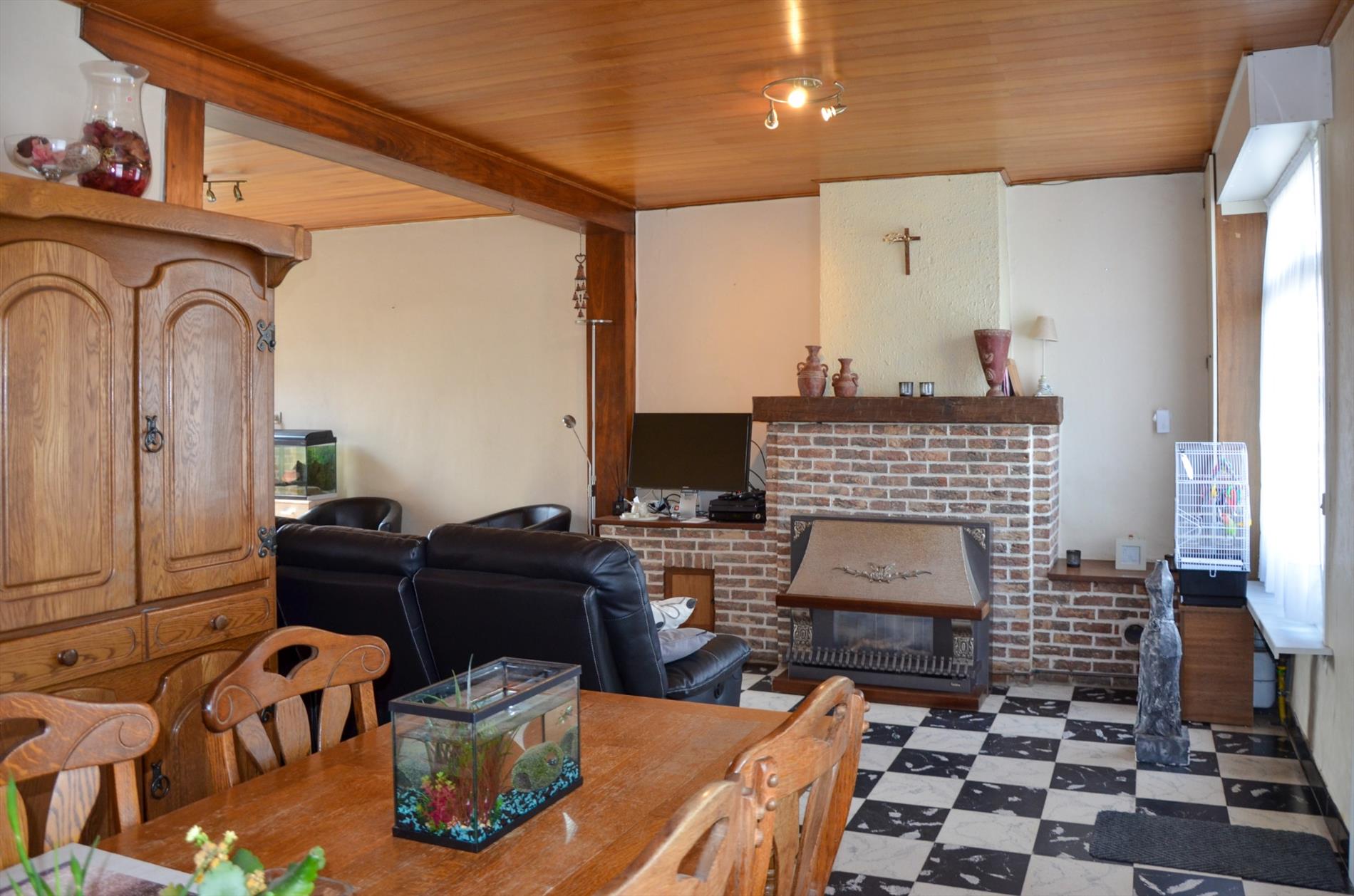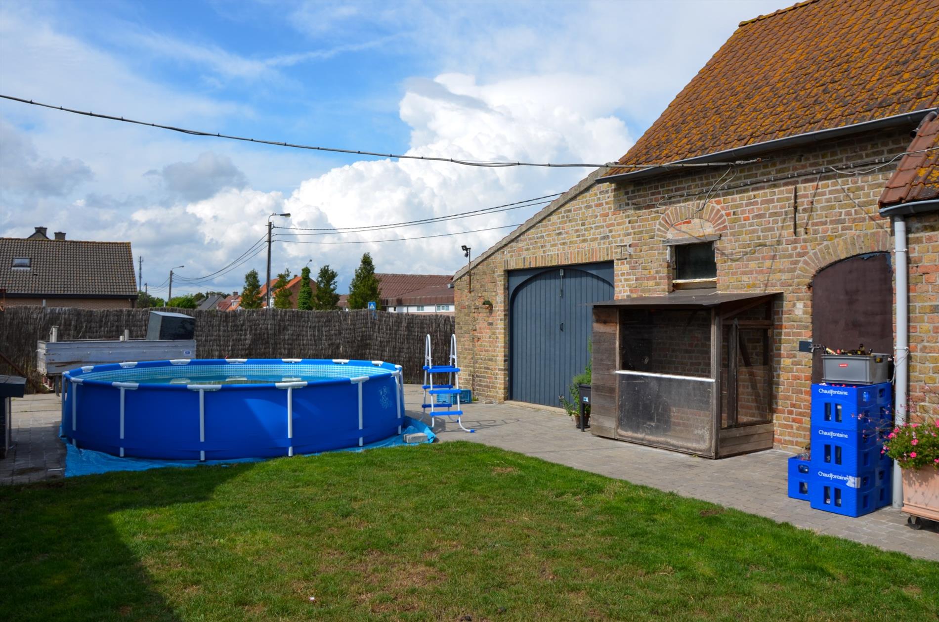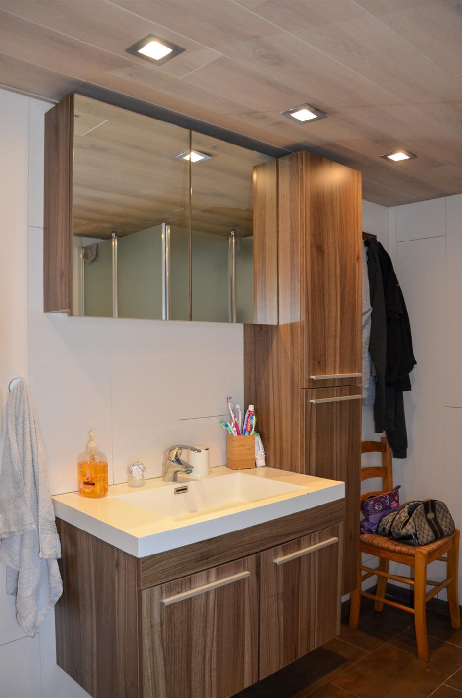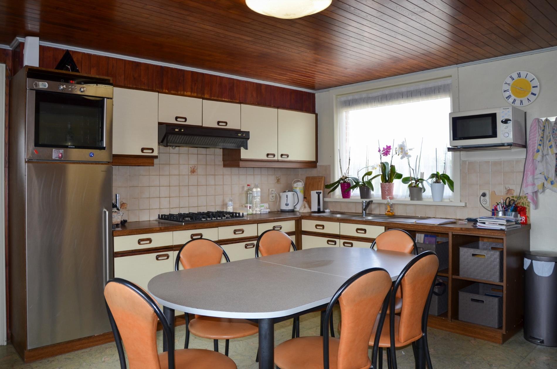 Eetplaats - woonkamer - kelder - ingerichte keuken met grote koelkast, oven, gasfornuis, dampkap en dubbele spoelbak - bijkeuken - bering en wasruimte - ingerichte badkamer met instapdouche, toilet en lavabomeubel - volledig omheinde tuin met terras en ruime oprit - tuinberging - slaapkamer - fietsberging - ruime garage met zolder.