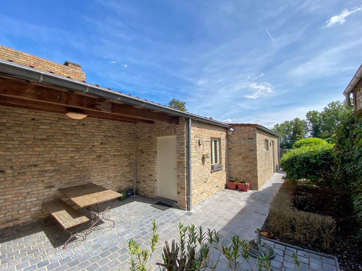 Ruime oprit - grote garage met automatische sectionaalpoort - gezellige koertje. (Deels overdekt)