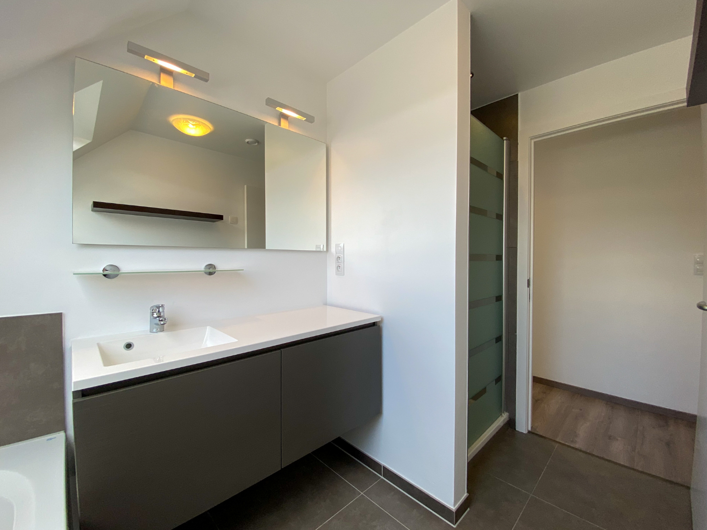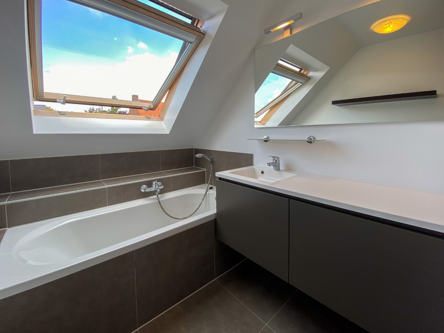 Nachthal - apart toilet - ingerichte badkamer met instapdouche, ligbad en dubbele wastafel - 3 slaapkamers - geïsoleerde zolder, toegankelijk via valtrap.