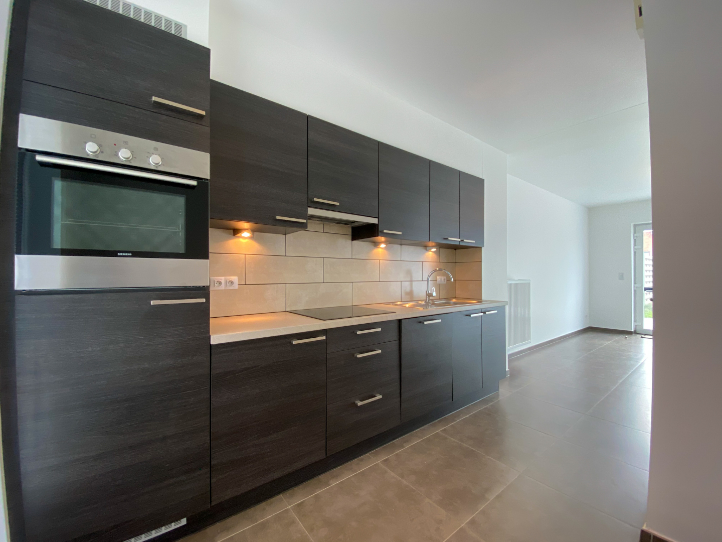 Inkomhal - apart toilet - berging - leefruimte - open ingerichte keuken met o.a. een vaatwas, elektrische kookplaat, dampkap, koelkast en combi oven - berging.