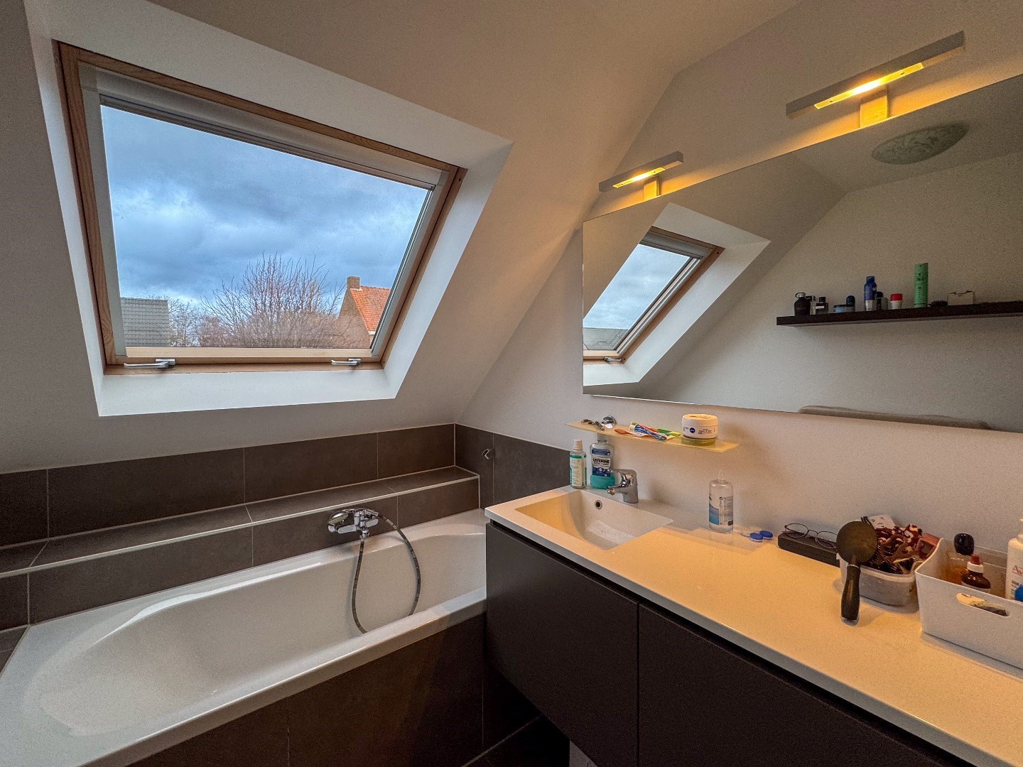Nachthal - apart toilet - ingerichte badkamer met instapdouche, ligbad en dubbele wastafel - 3 slaapkamers - geïsoleerde zolder, toegankelijk via valtrap.