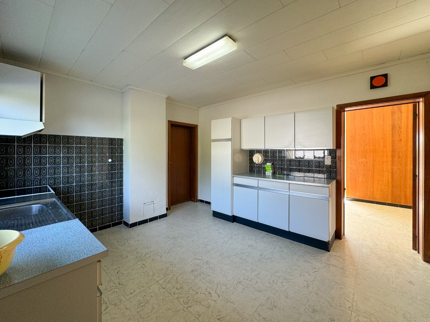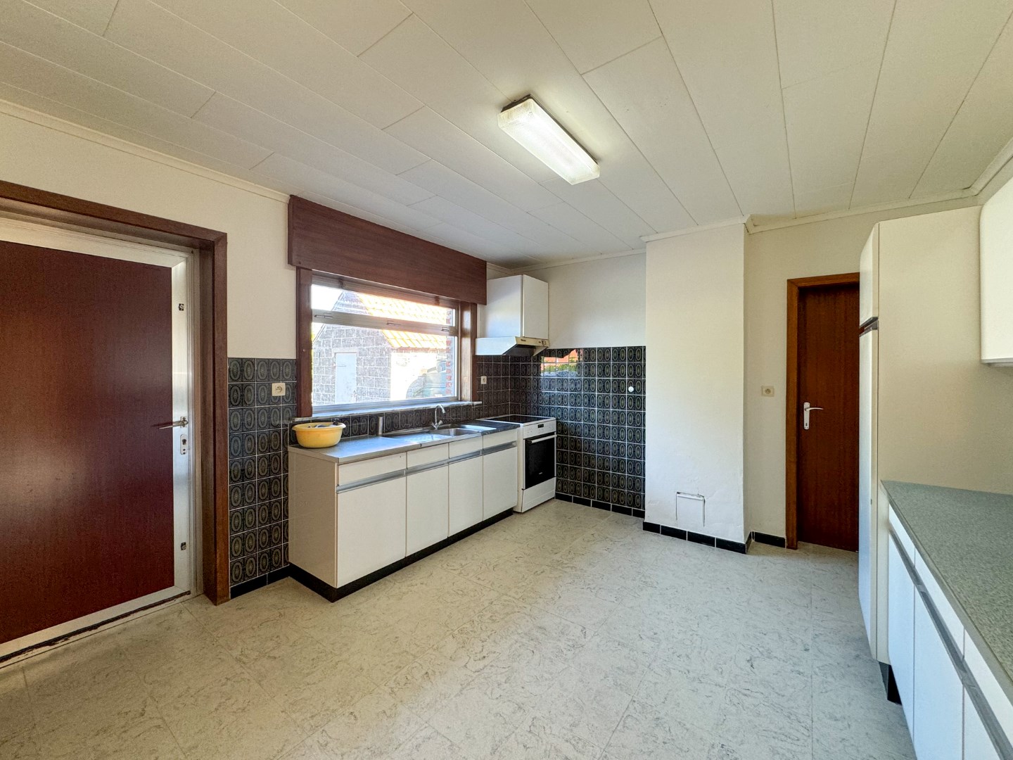 Inkom - leefruimte - keuken met spoelbak, oven, elektrische kookplaat en dampkap - badkamer met ligbad/douche, toilet, lavabomeubel en aansluitingen voor wasmachine - slaapkamer - kelder.