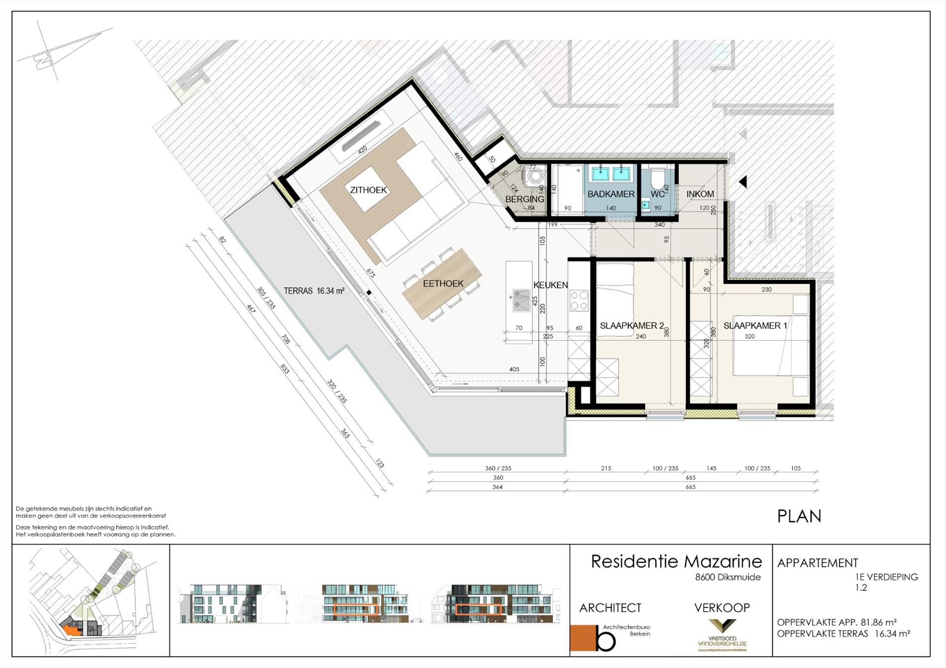 De appartementen variëren van 58m2 tot 122m2 en beschikken over 1,2 of 3 slaapkamers al dan niet met terrassen die variëren van 9m2 tot 59m2. Tevens zijn er 13 achterliggende garages aanwezig die toegankelijk zijn via de doorrit op de gelijkvloerse verdieping.