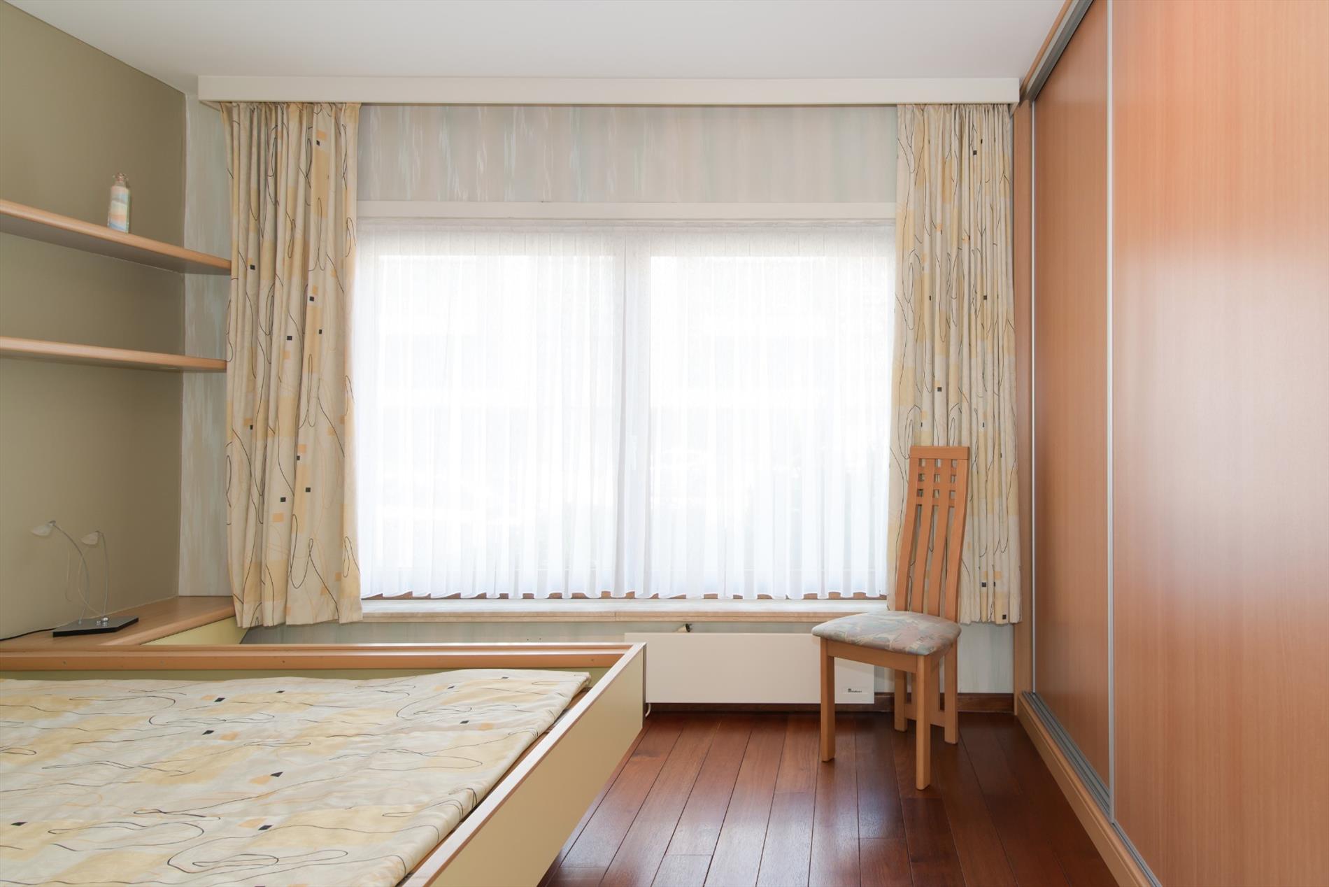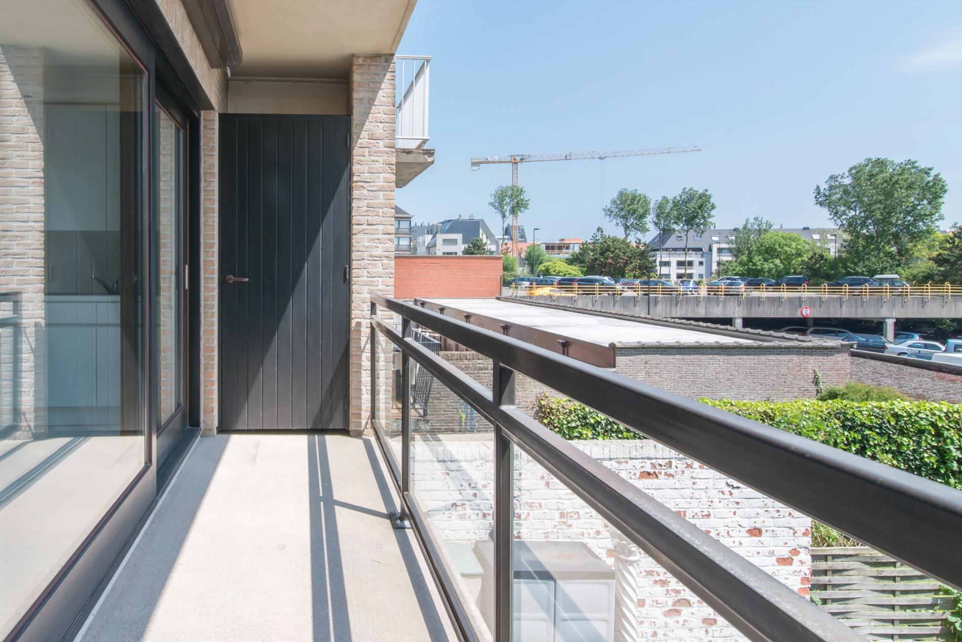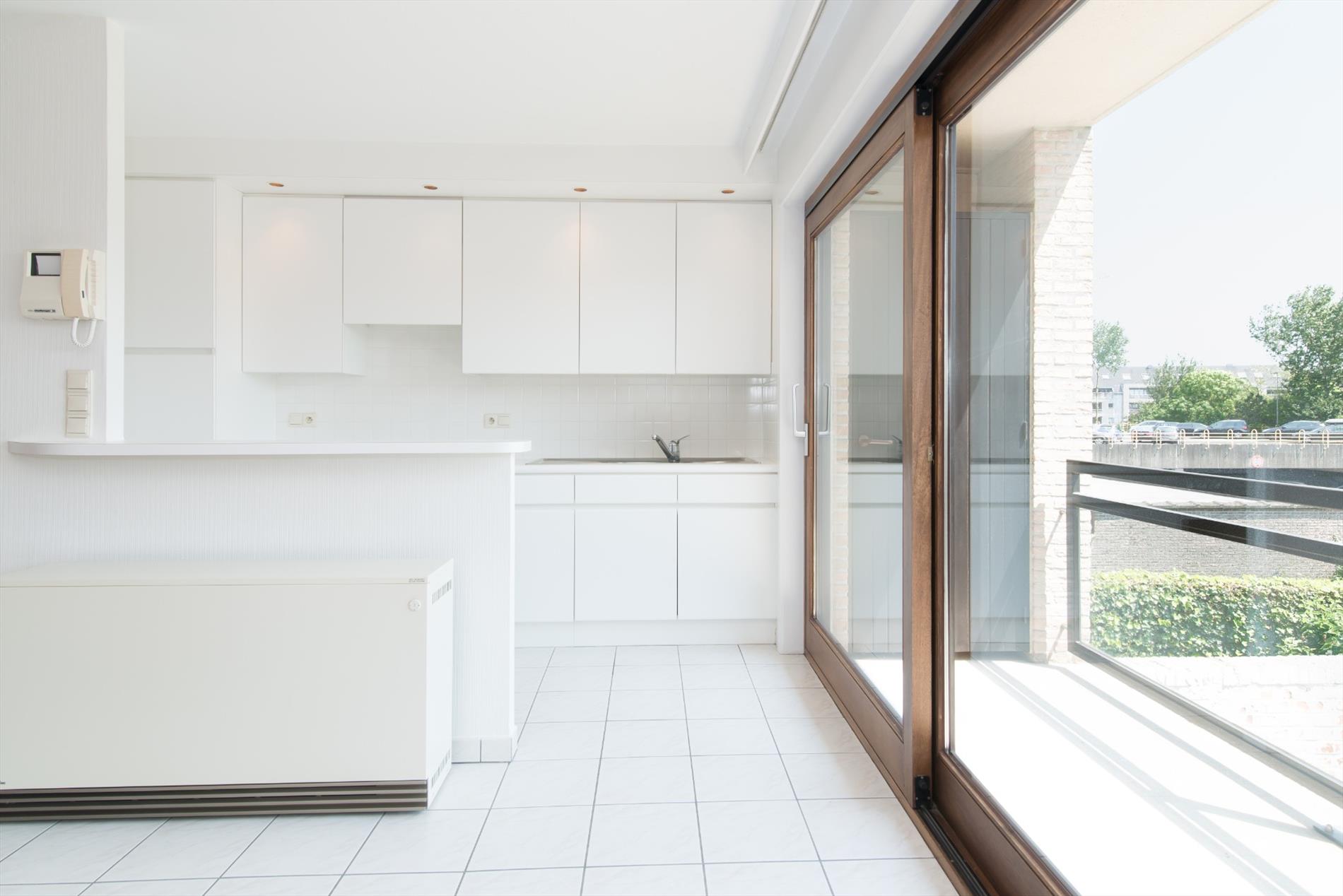 Inkomhal - apart toilet - lichtrijke leefruimte - open ingerichte keuken met o.a. elektrische kookplaat, dubbele spoelbak en dampkap - berging - aangenaam terras met bering en zicht op het park - ingerichte badkamer met instapdouche en dubbele wastafel - slaapkamer.