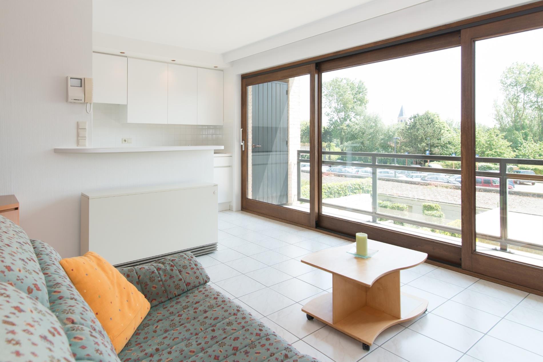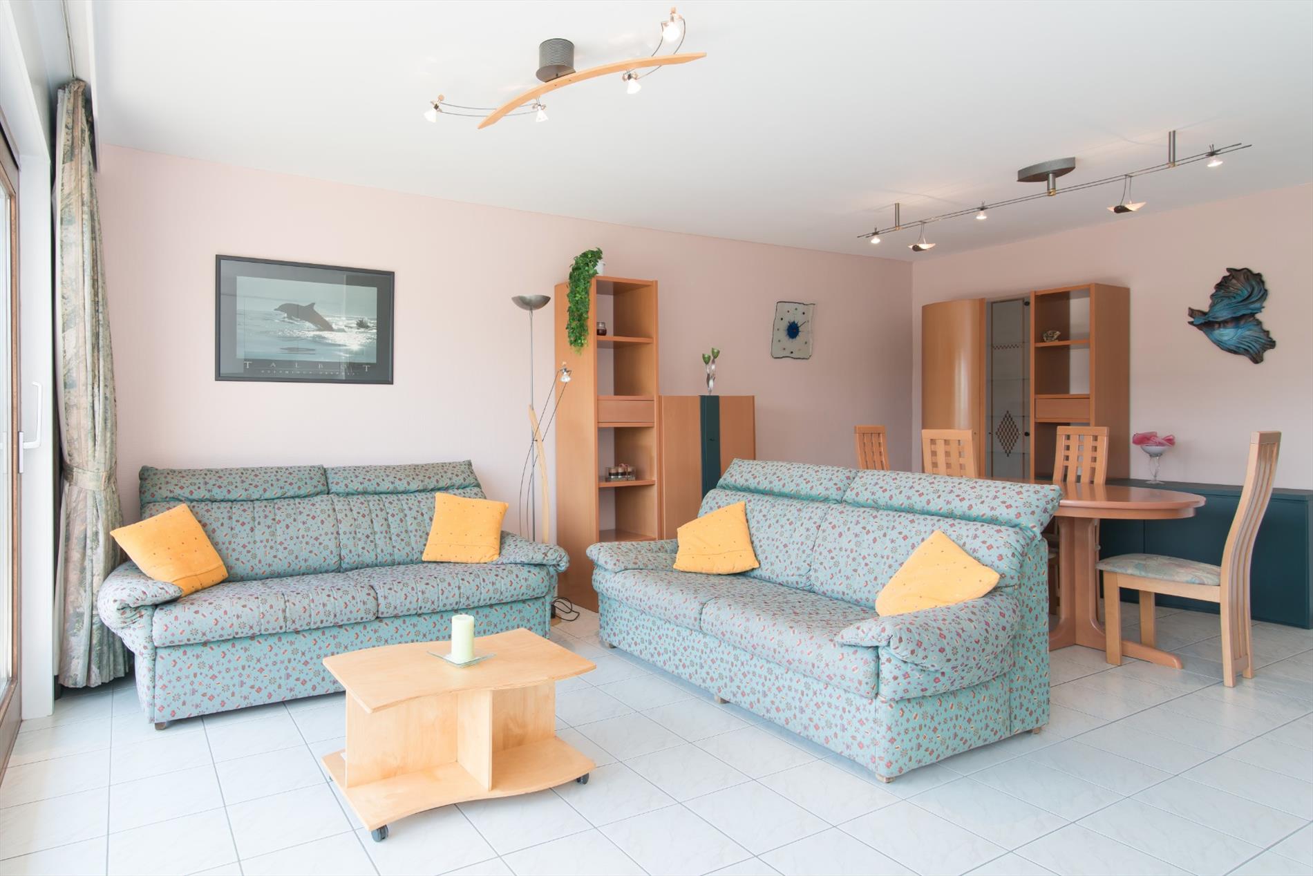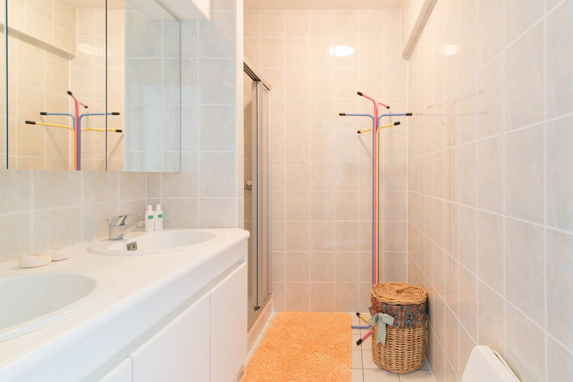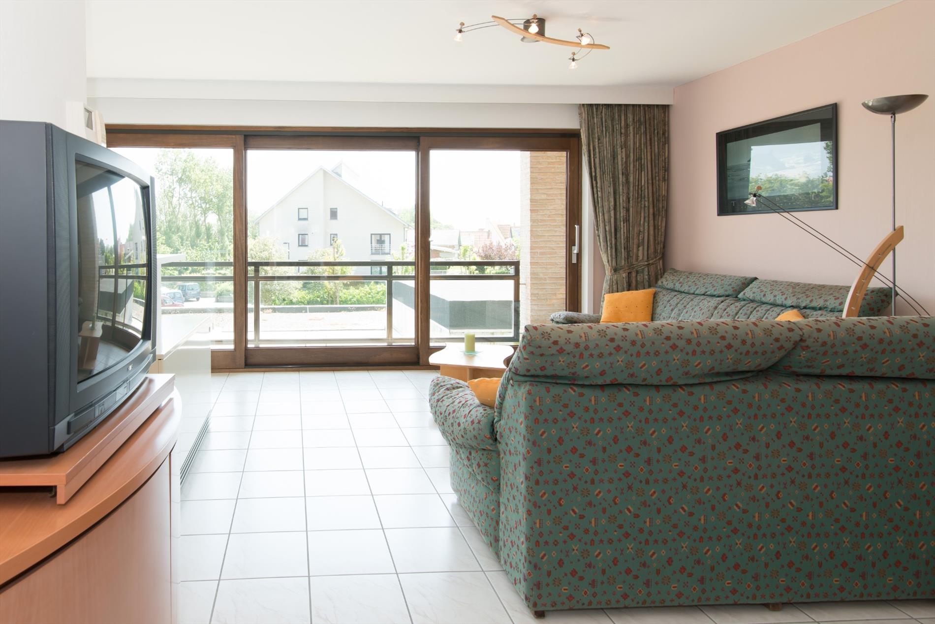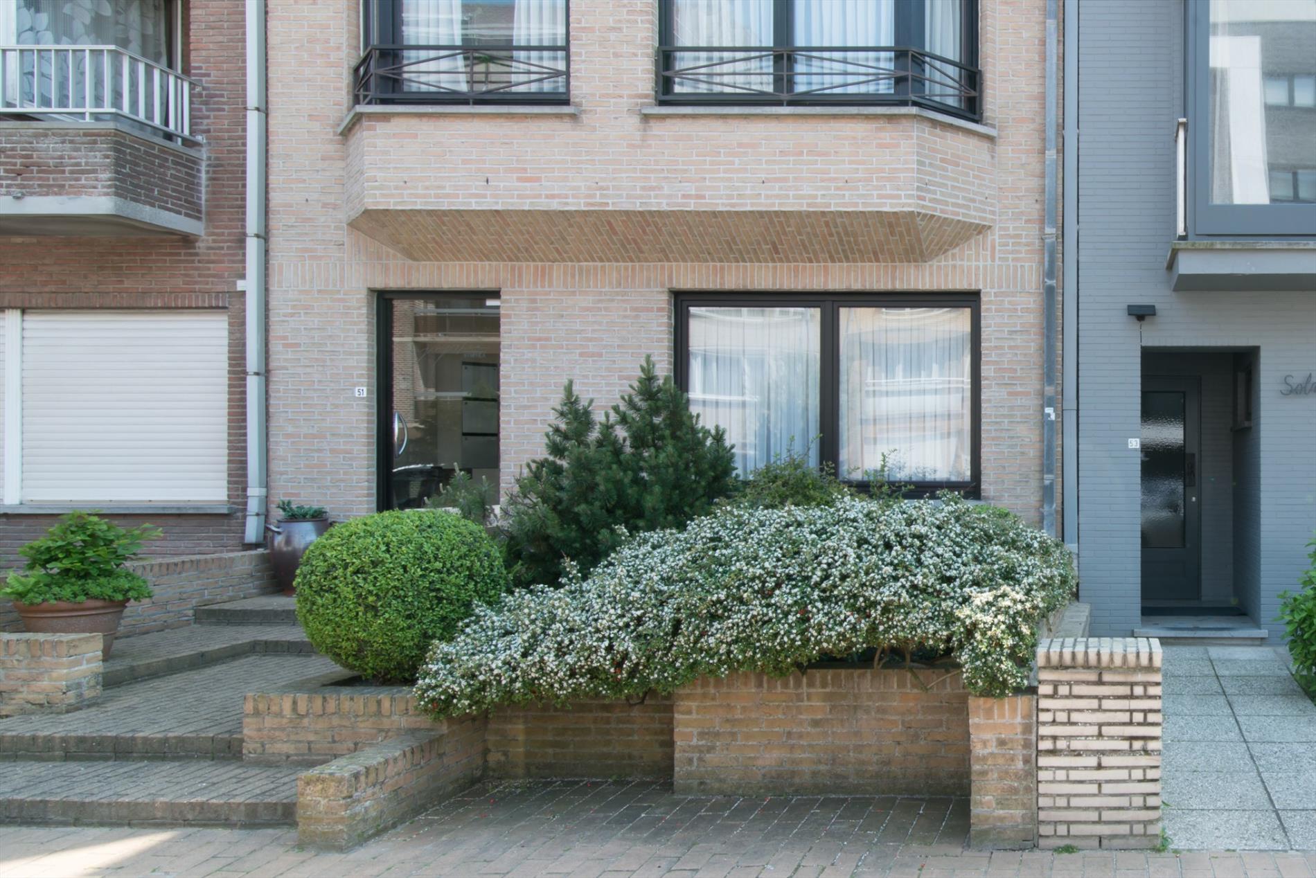 Dit gelijkvloerse appartement in residentie 'Nymphea' heeft een zeer centrale ligging op amper 200 van het strand en bestaat uit: