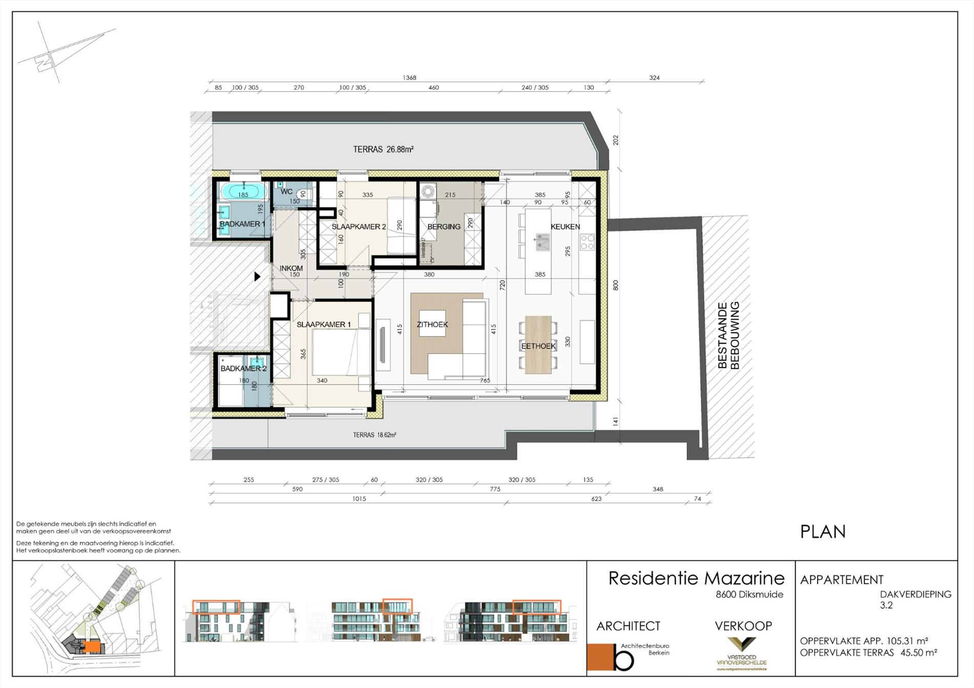 De appartementen variëren van 58m2 tot 122m2 en beschikken over 1,2 of 3 slaapkamers al dan niet met terrassen die variëren van 9m2 tot 59m2. Tevens zijn er 13 achterliggende garages aanwezig die toegankelijk zijn via de doorrit op de gelijkvloerse verdieping.