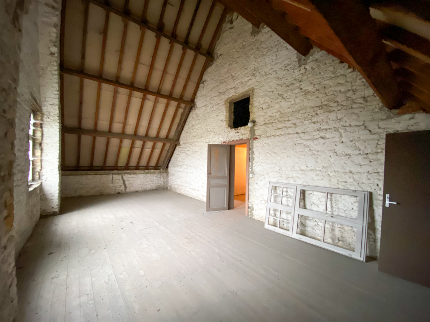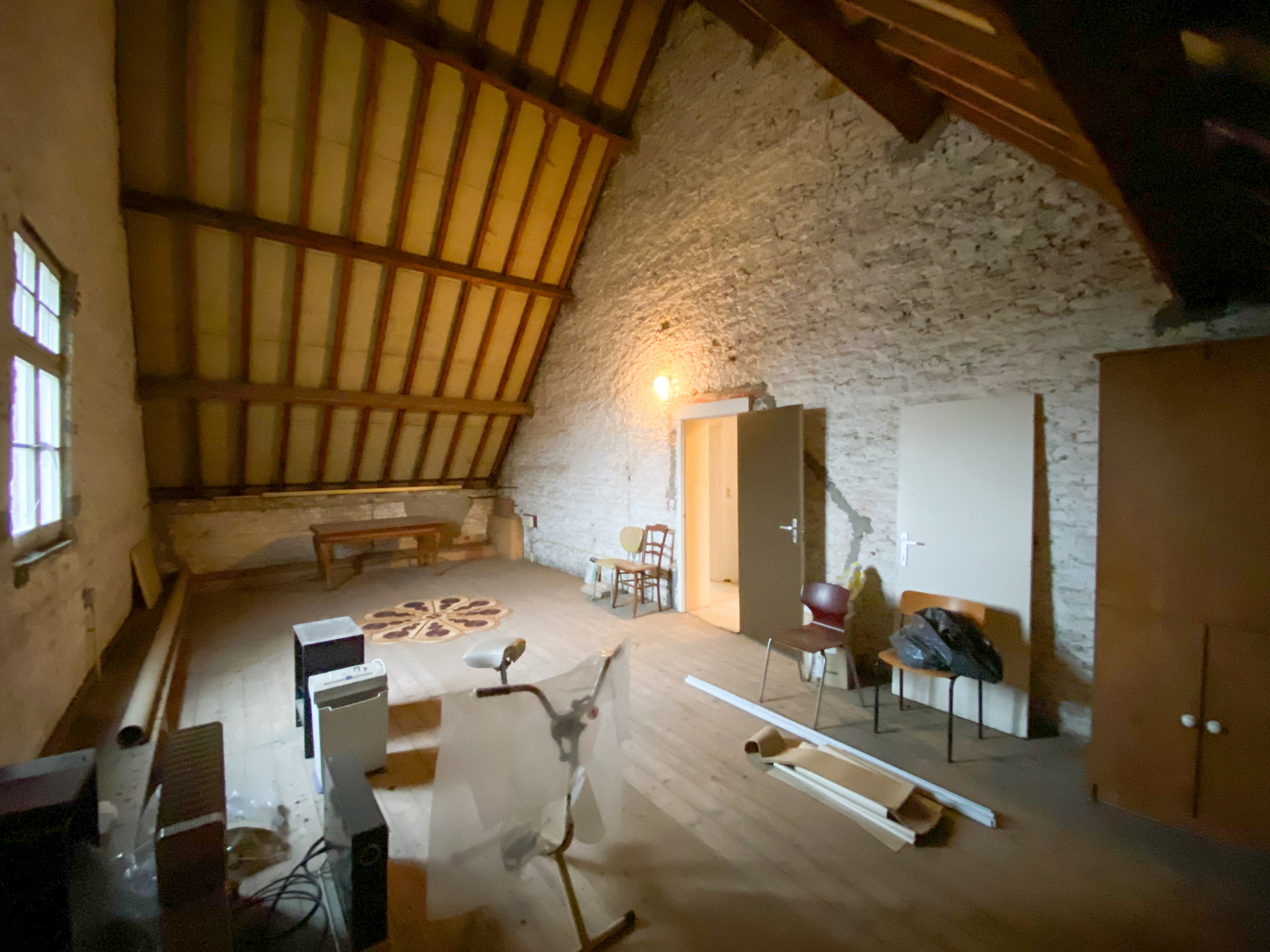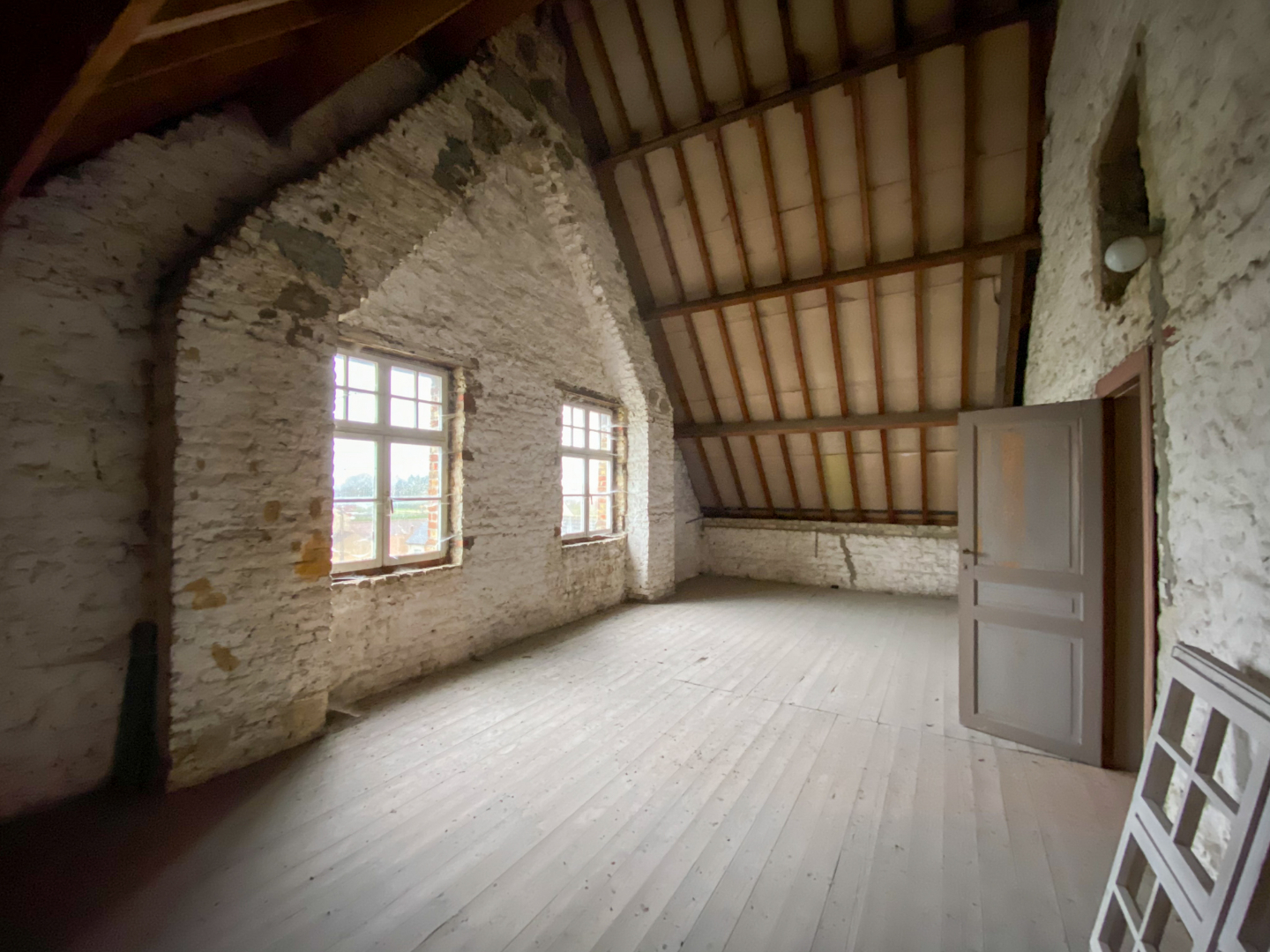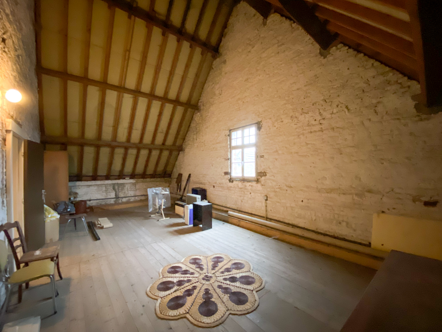 Op de gelijkvloerse verdieping vinden we een royale inkomhal met achterliggende traphal, een bureau, drie grote en gezellige leefruimtes, een keuken met naastliggende wasplaats, een toilet, twee buitenbergingen en een garage. De eerste verdieping bestaat uit een nachthal, twee badkamers, drie volwaardige slaapkamers en een grote zolderruimte. Op de tweede verdieping vinden we nogmaals 3 zolderruimtes die diverse mogelijkheden bieden.