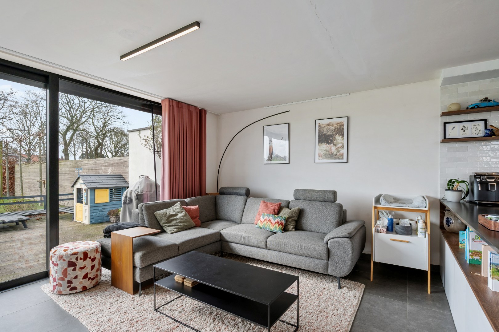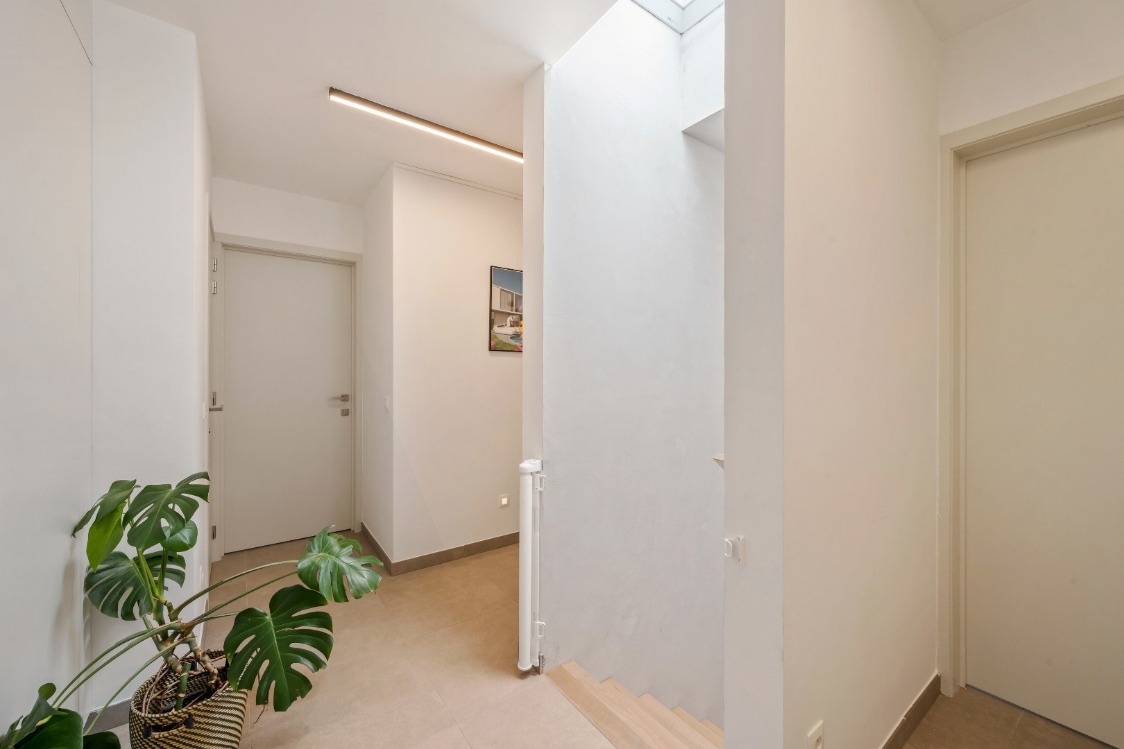 Ruime inkomhal - apart toilet - lichtrijke en ruime leefruimte - open en volledig ingerichte keuken voorzien van alle comfort (vaatwas, koelkast, microgolf, oven, inductie kookplaat, dampkap en dubbele spoelbak) - ruime garage met automatische sectionaalpoort, bergruimte en wasvoorzieningen.