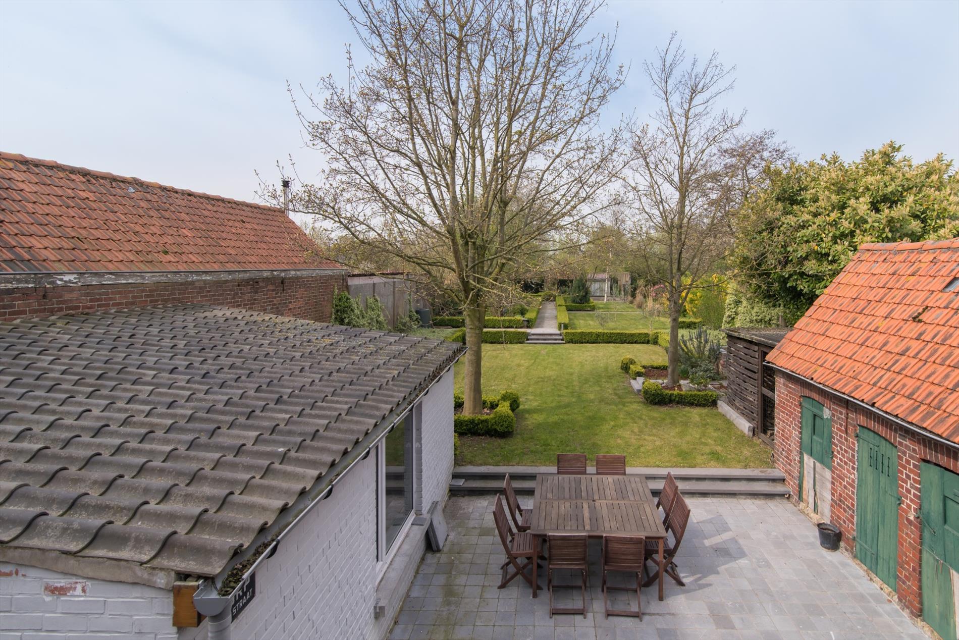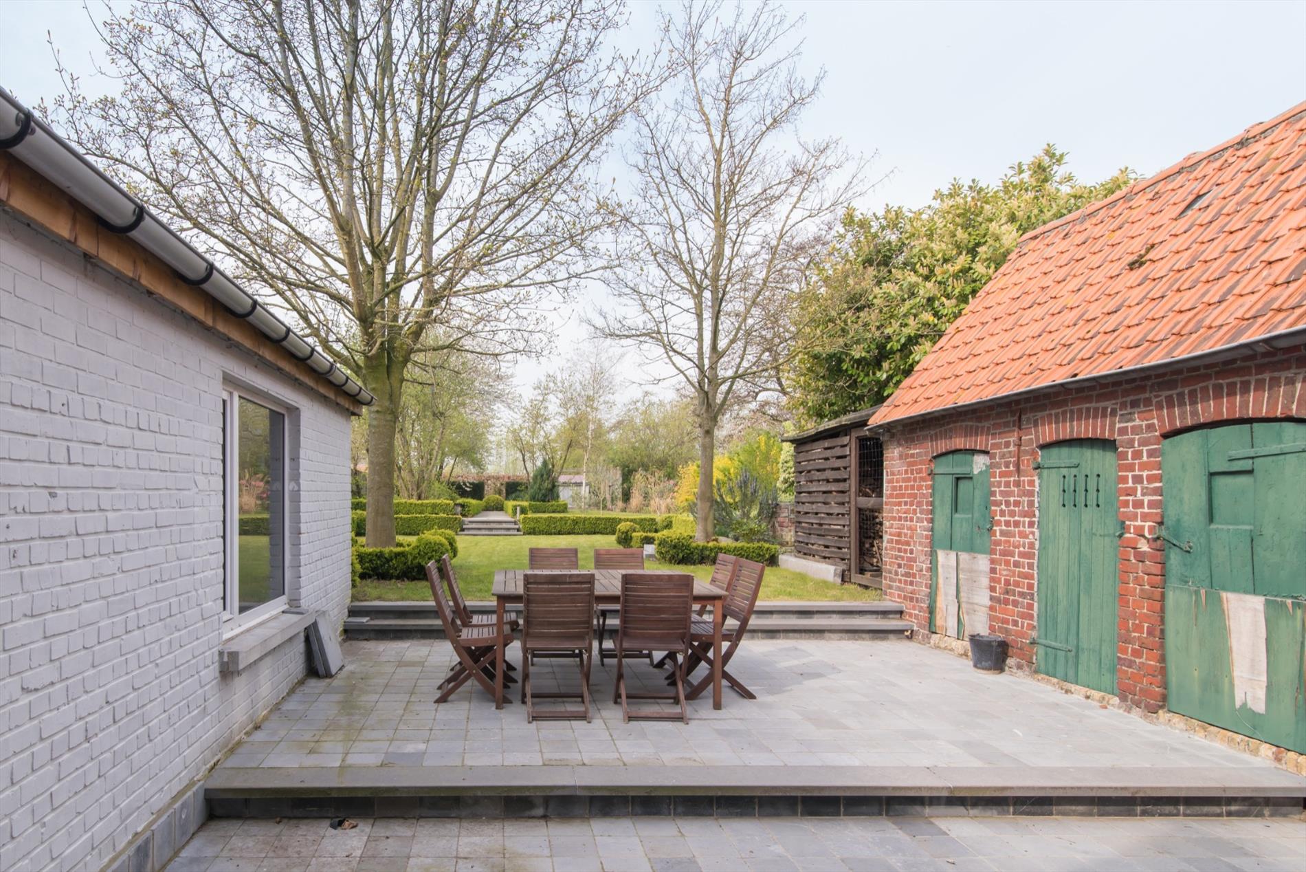 Volledig aangelegde tuin met aangenaam zonneterras, ruime tuinberging en koterijen. In deze prachtige tuin zijn nog enkele gezellige plekjes gevestigd, zoals een plaats om te barbecueën, een pergola met druivelaars en op het einde van de tuin is een ruim gedeelte voorzien van enkele fruitbomen.